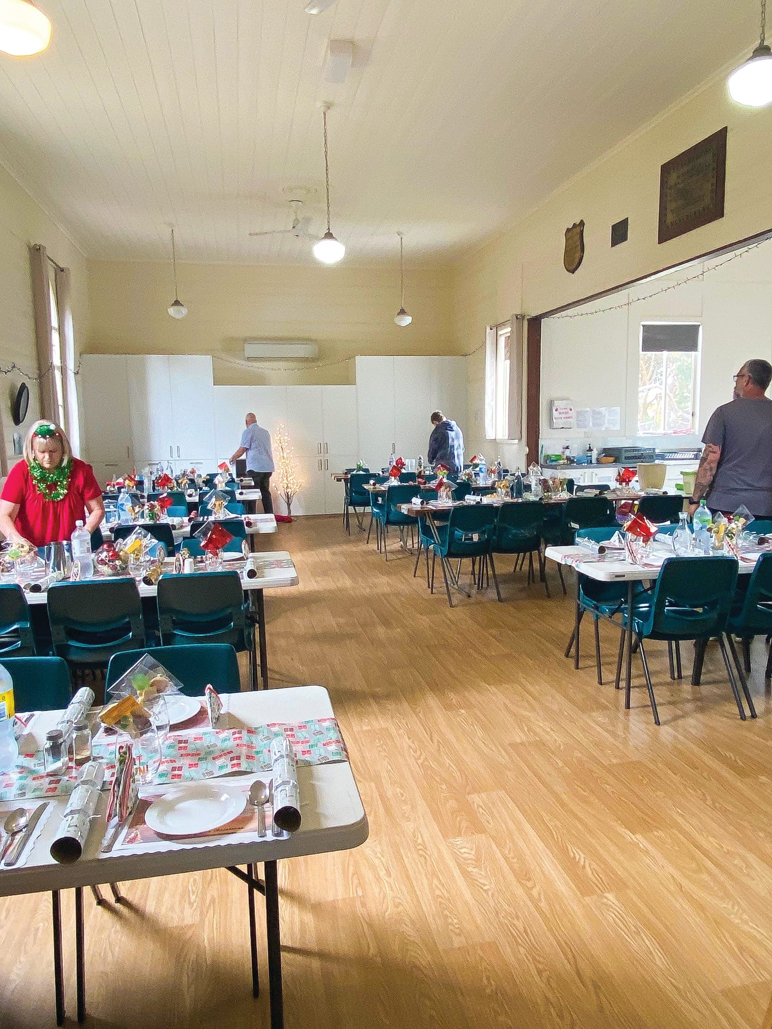 The tables were all set, done up like Christmas Day, because it was! A team of more than 15 volunteers had worked for days preparing, cooking, baking and making.