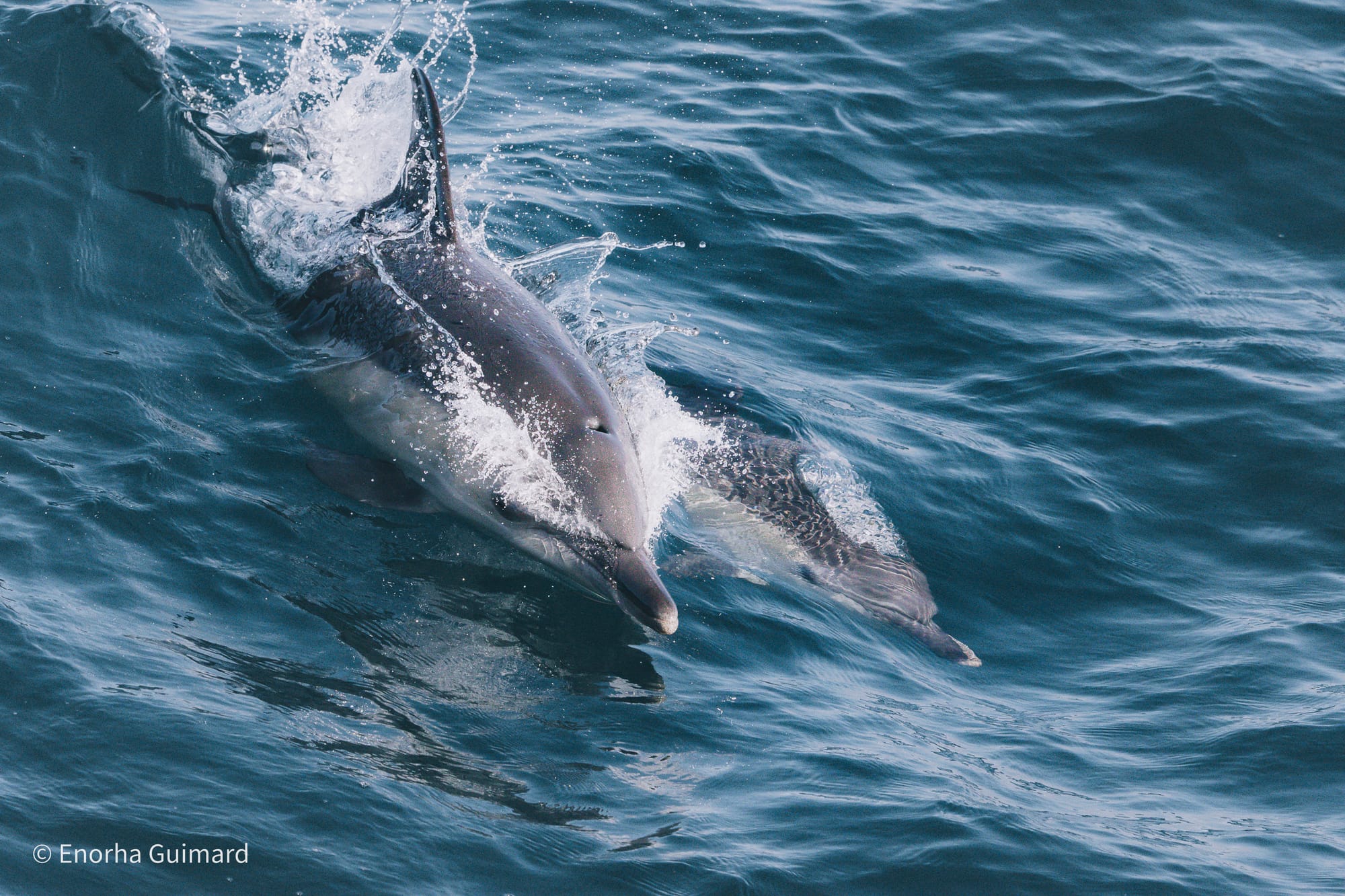 Common dolphins can grow to 2.5 metres in length which is smaller than their bottlenose cousins that can get to 3.8 metres.