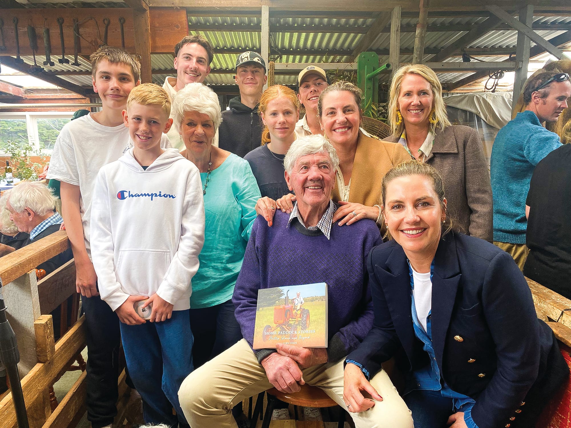 It was a great meeting of the island's clans in the famous Otira shearing shed at Ventnor on Saturday, for the launch of the much-anticipated book "Home Paddock Stories. Phillip Island and Beyond", by Laurie Dixon.