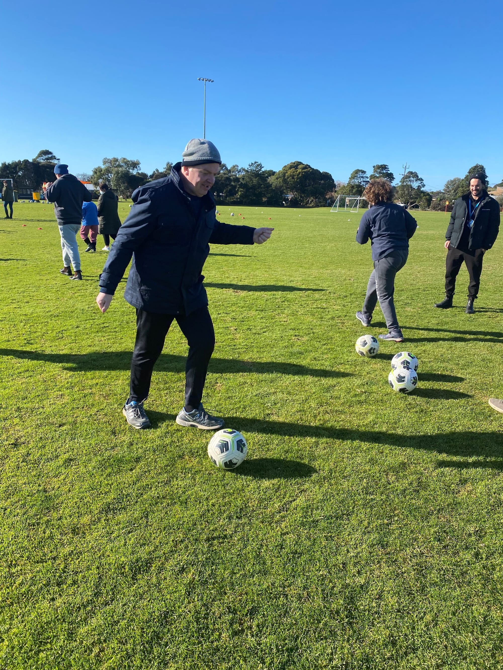 “In fact, if anyone else in the community . . . abled and disabled . . . would like to join in and kick a soccer ball around the oval on Tuesday mornings between 10am and 11 am we would love them to come along.”