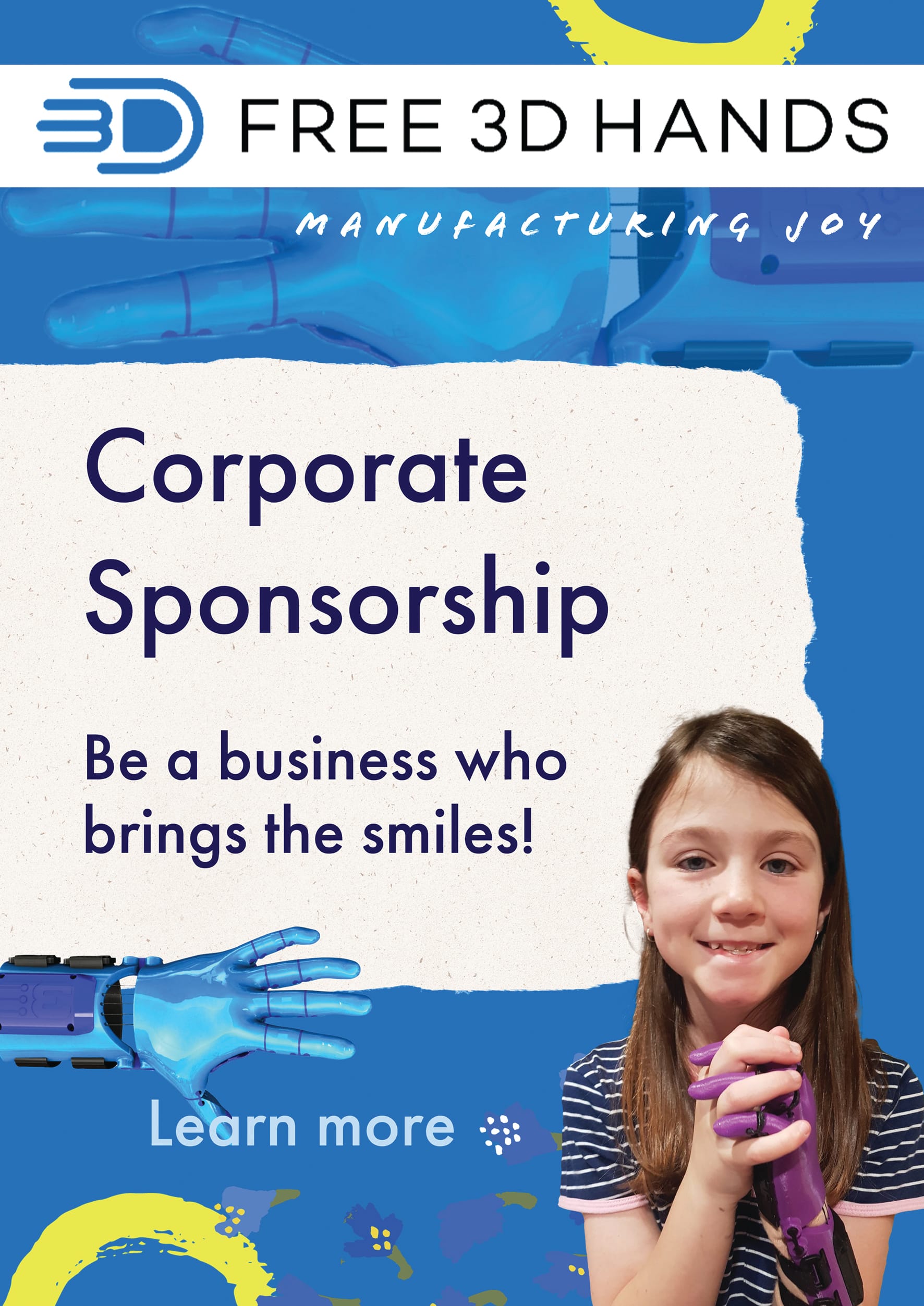 Free 3D Hands has launched their Corporate Sponsorship pack which invites businesses to sign-on as annual donors to help sustain the charity in the long term.