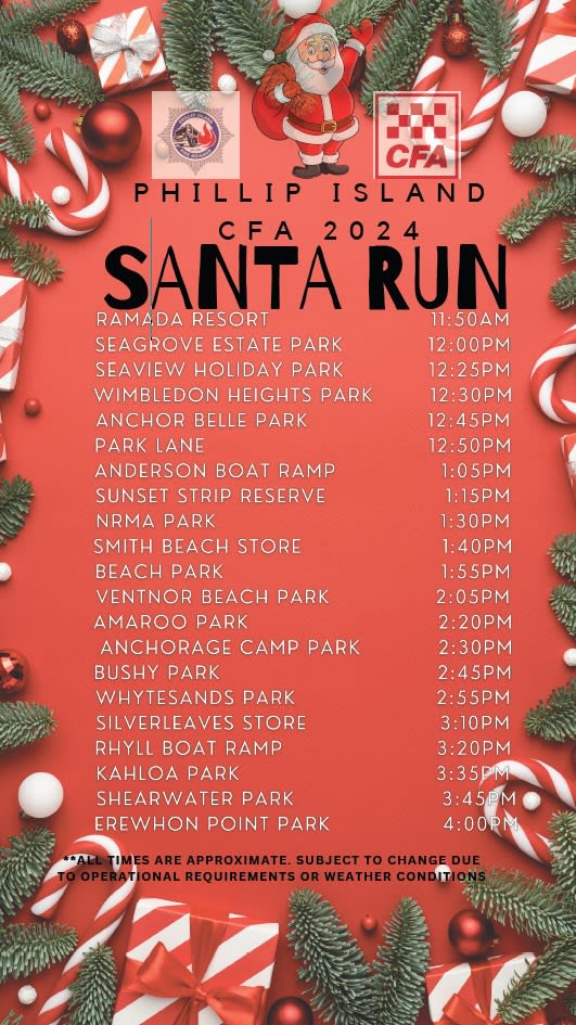 Say hello to Santa as he travels by firetruck around the Cowes estates.