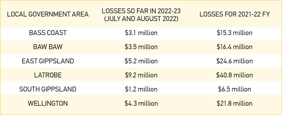 “In 2021-22, Gippslanders lost more than $125 million to the pokies. We also know more money is being lost to online gambling.