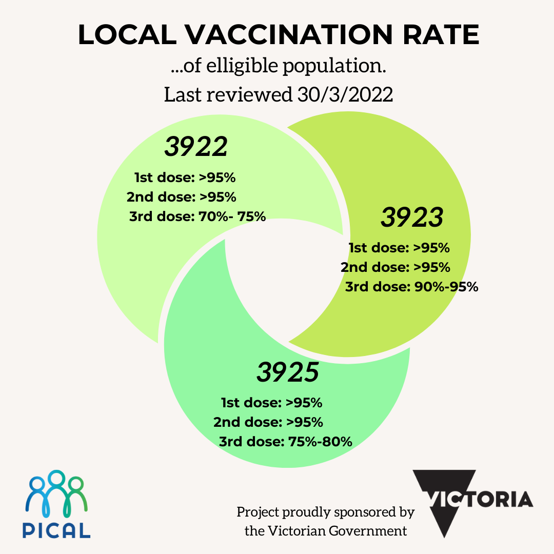 “There are still a large number of infections on Phillip Island, and across Victoria the percentage of third booster vaccinations is still very low, so this local initiative by PICAL and DFFH is aimed at promoting vaccination uptake and building trust with the community.”