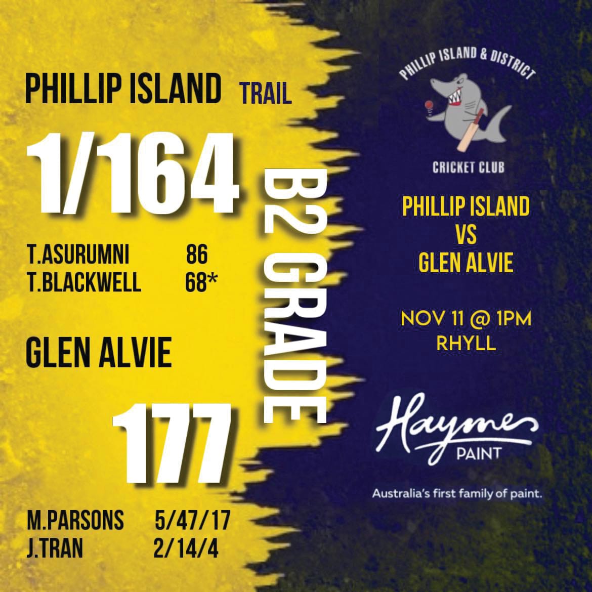 This week's B Grade results.