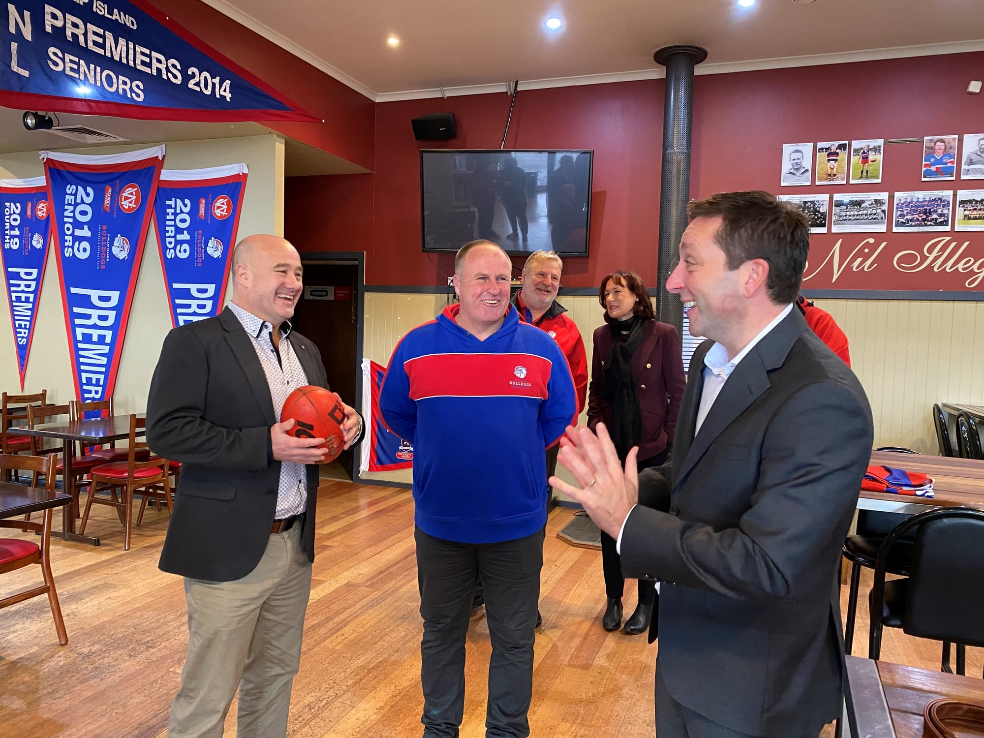 Matthew Guy visited Cowes this morning to promise $350,000 to the Phillip Island Football Netball Club.