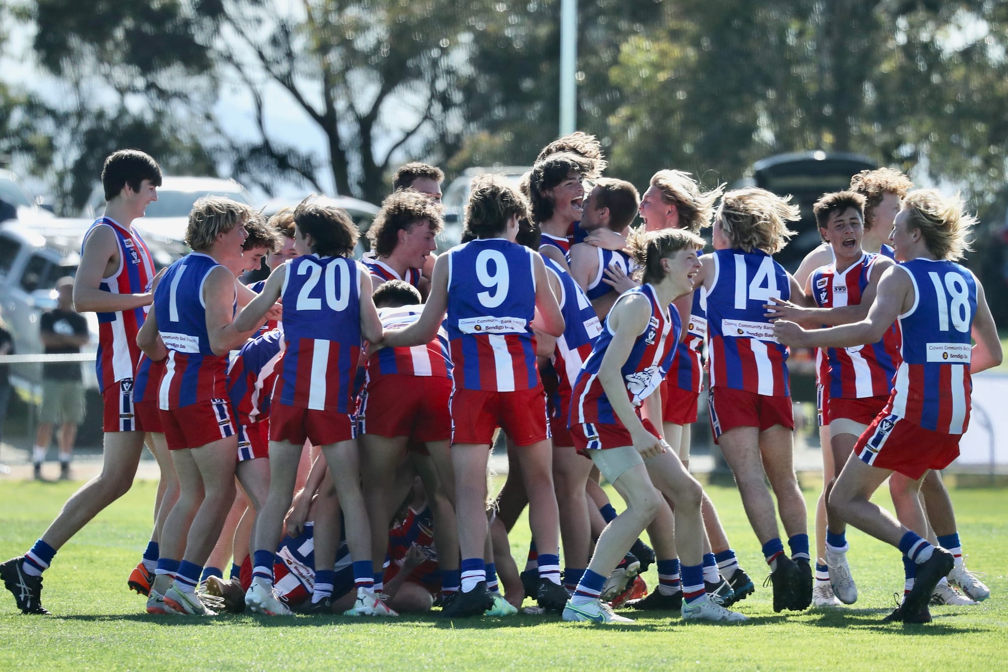 Phillip Island: Oliver Duggan – 3, Jack Briggs, Benjamin Chihotski, Charlie O’Garey, Max Taylor, Heath Womersley – 1. Warragul Industrials: Tom Logan – 2, Thomas Cornwall, Cody Templeton – 1.