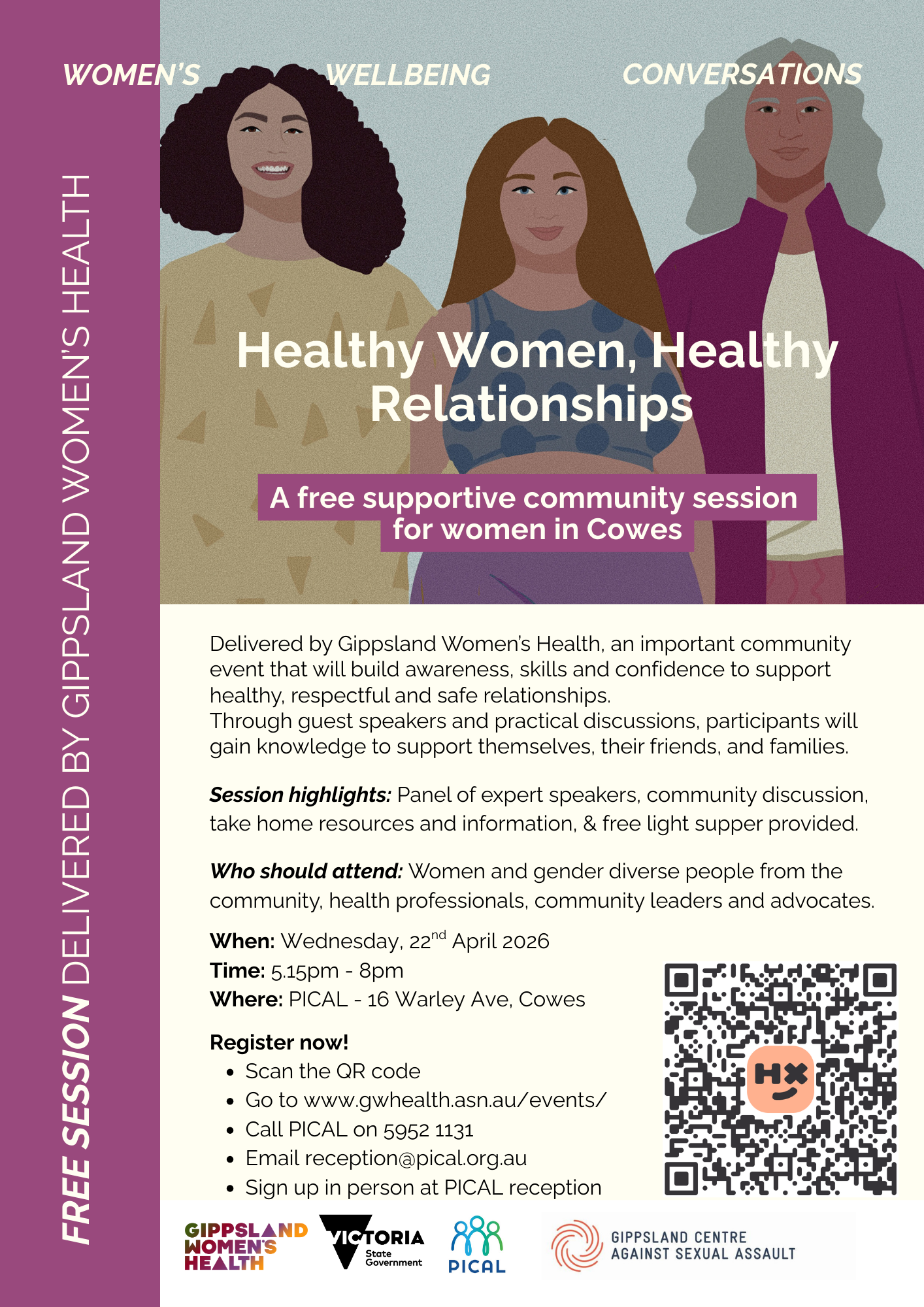 Delivered by Gippsland Women's Health, an important community event that will build awareness, skills and confidence to support healthy, respectful and safe relationships.