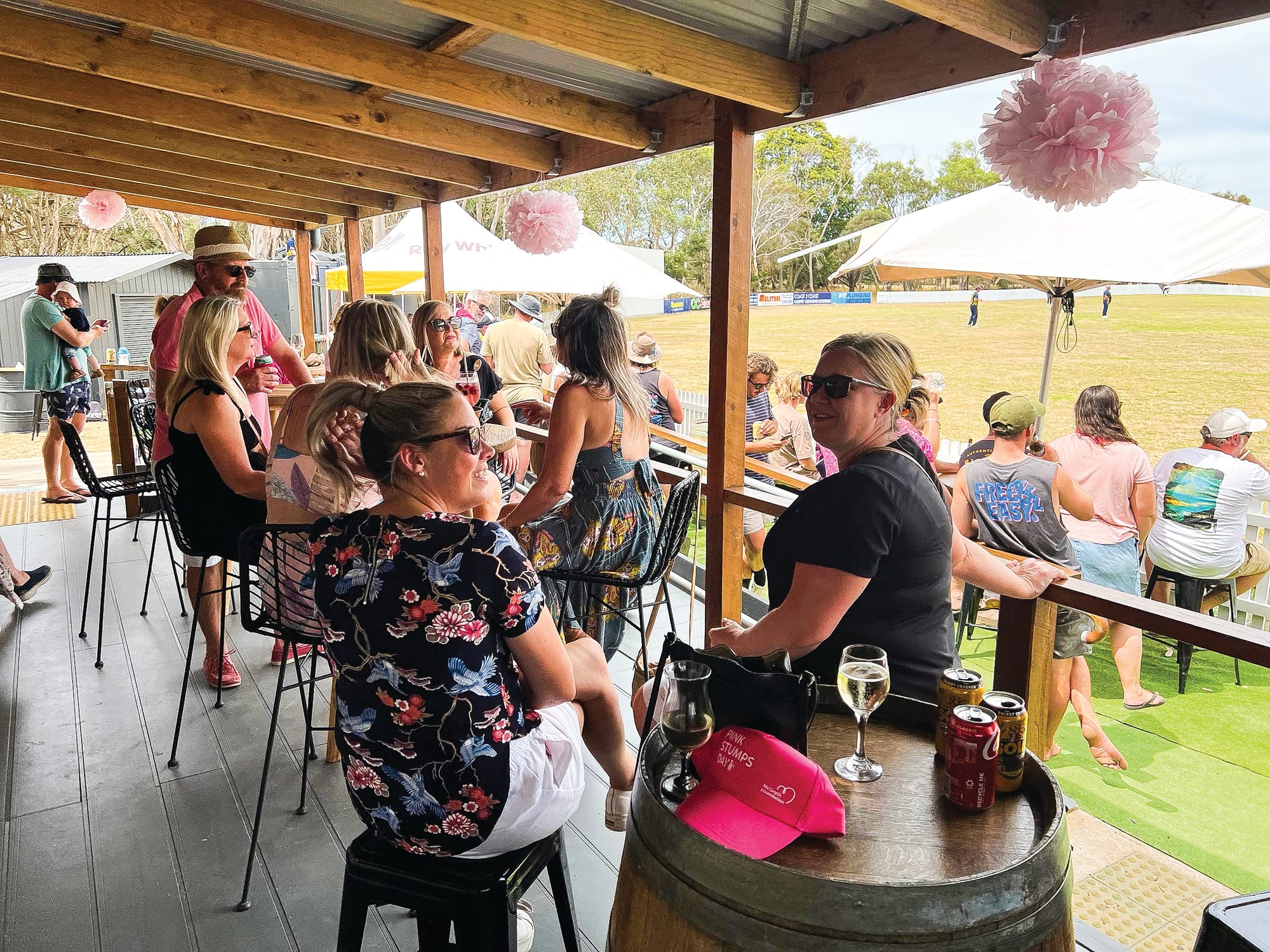 Several hundred people turned out to watch the Phillip Island Cricket Club C2 sides battle it out on Pink Stumps Day.