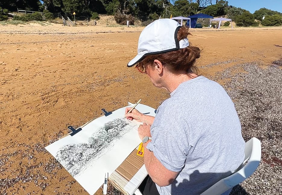 "I began drawing the coast of Phillip Island, Millowl, during lockdown when we could only travel 5kms from home on limited time," Lindy said.