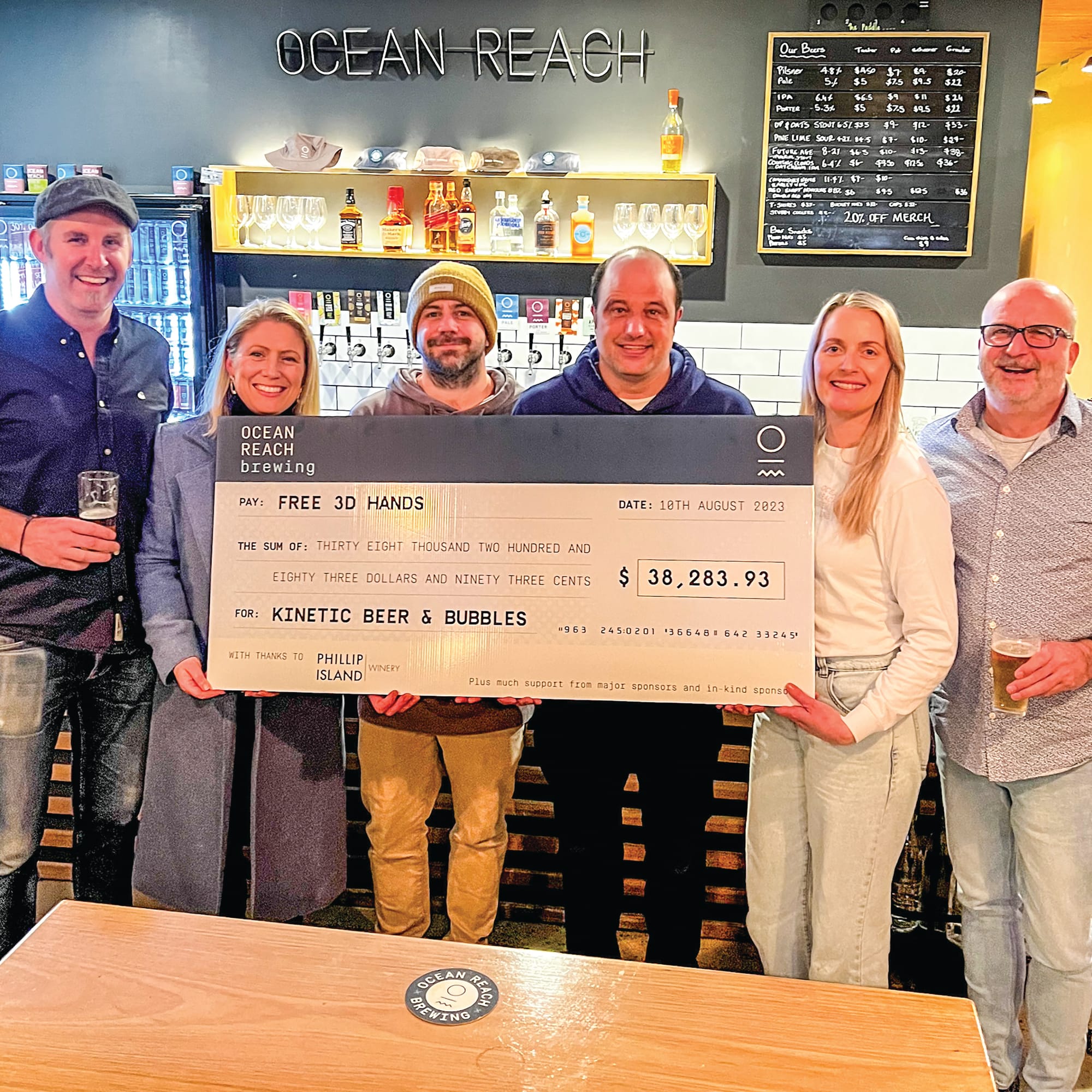 Ocean Reach Brewing and the Phillip Island Winery have raised $38,283 in their annual fundraiser for Free 3D Hands.