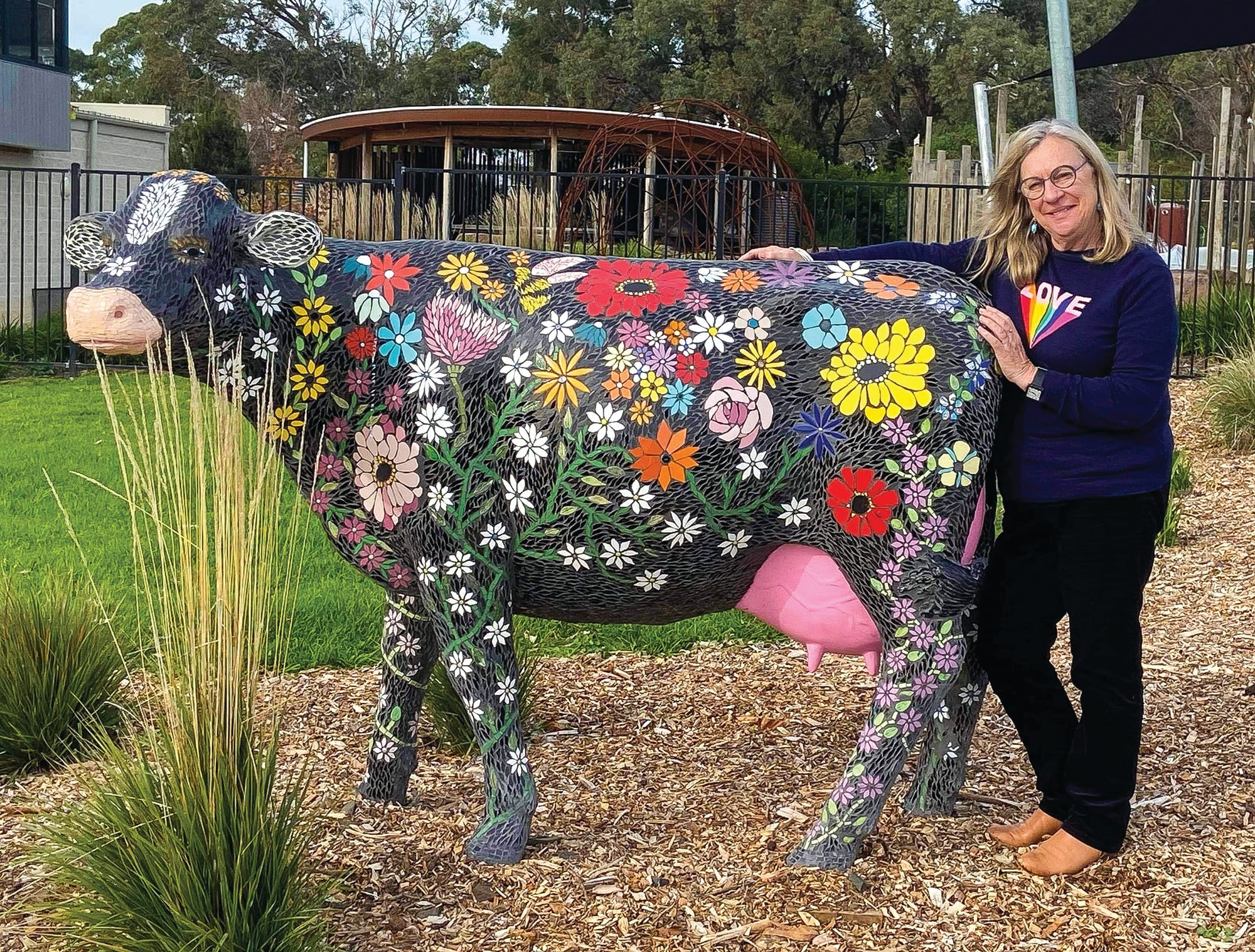 When the principal of Our Lady Star of the Sea primary school asked local mosaic artist Heather Fahnle to transform a fibre glass cow into a work of art, Heather rose to the challenge.