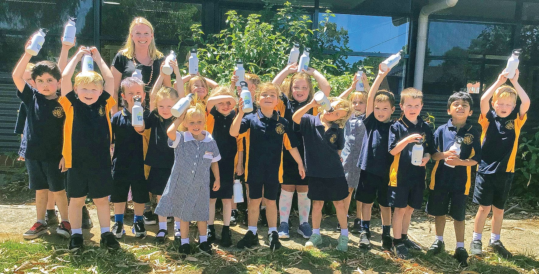 Prep pupils on the first day of school this year were given a free reusable water bottle.