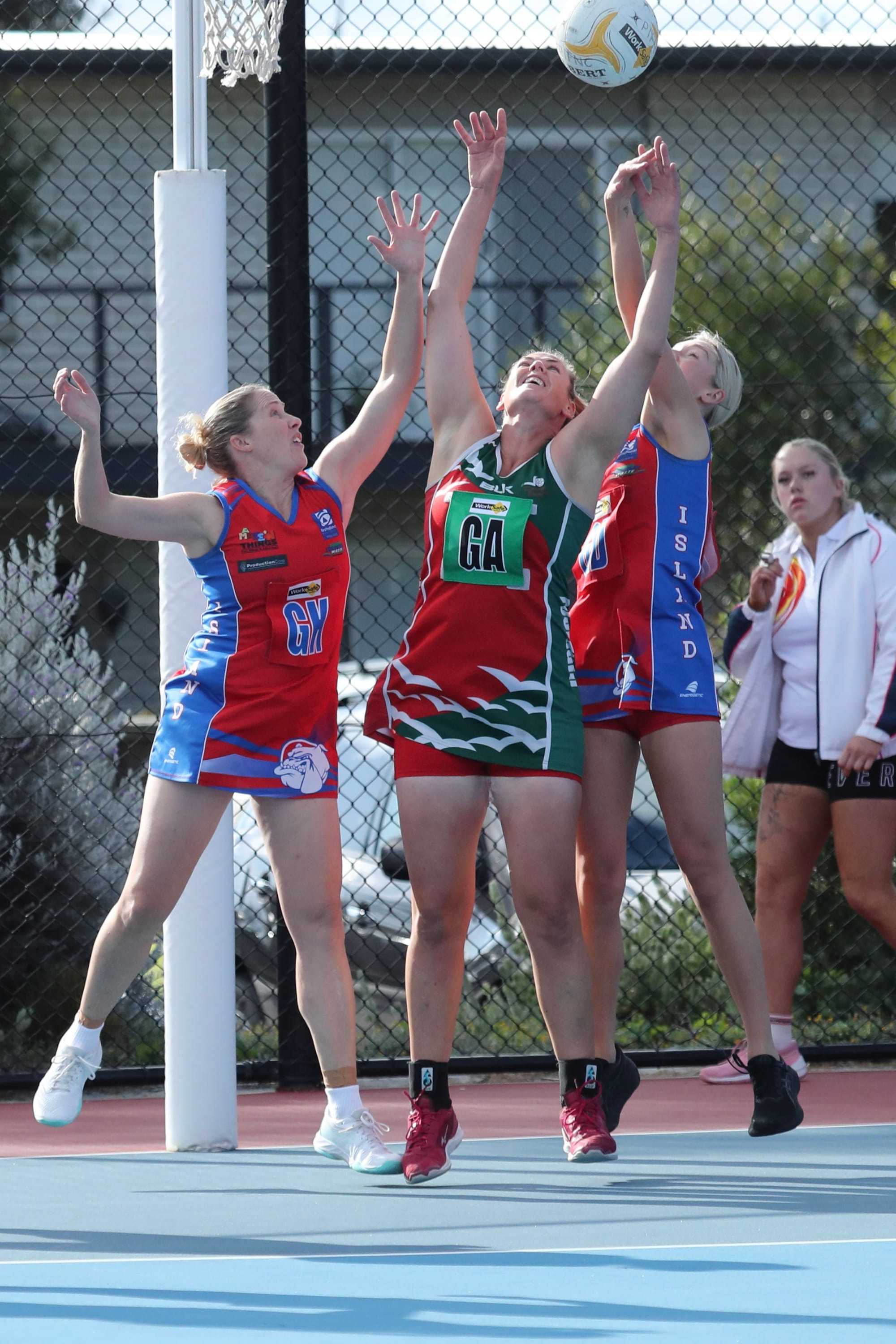 The midcourt pushed through tall players throughout the court to keep the game flowing, bringing it down to the Island's goal end, where debut Matilda Walton was shooting.