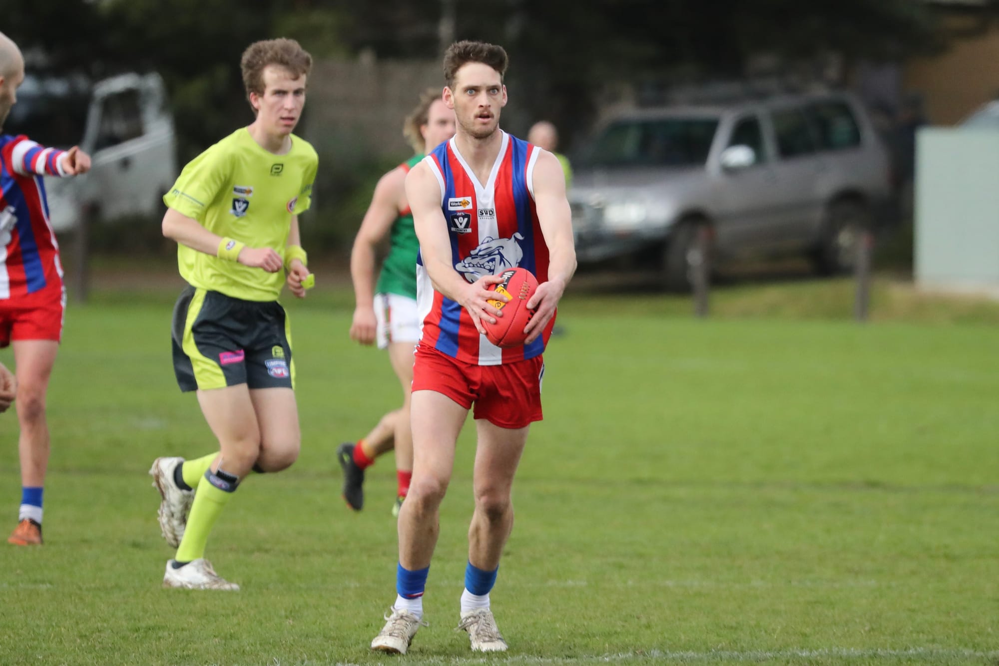 In the tough conditions the Bulldogs’ defence was set a tough test, and it was elder stateman Damien Holmes assisted ably by returning Daniel Pearce that stood tall.