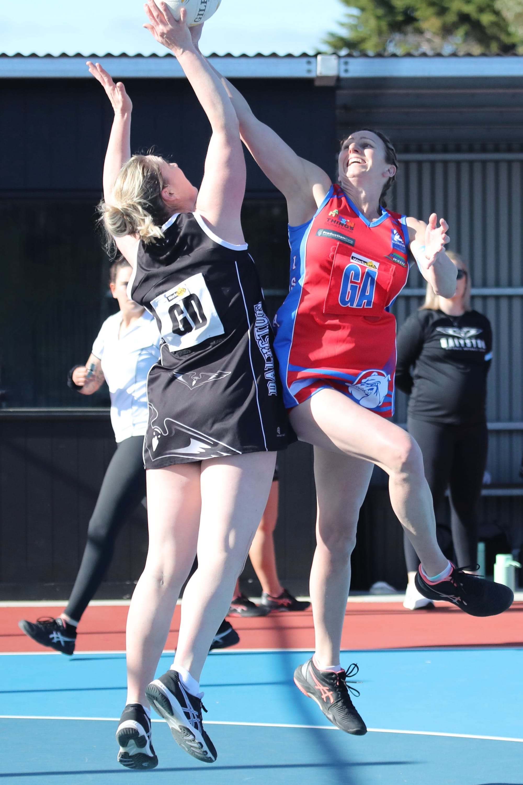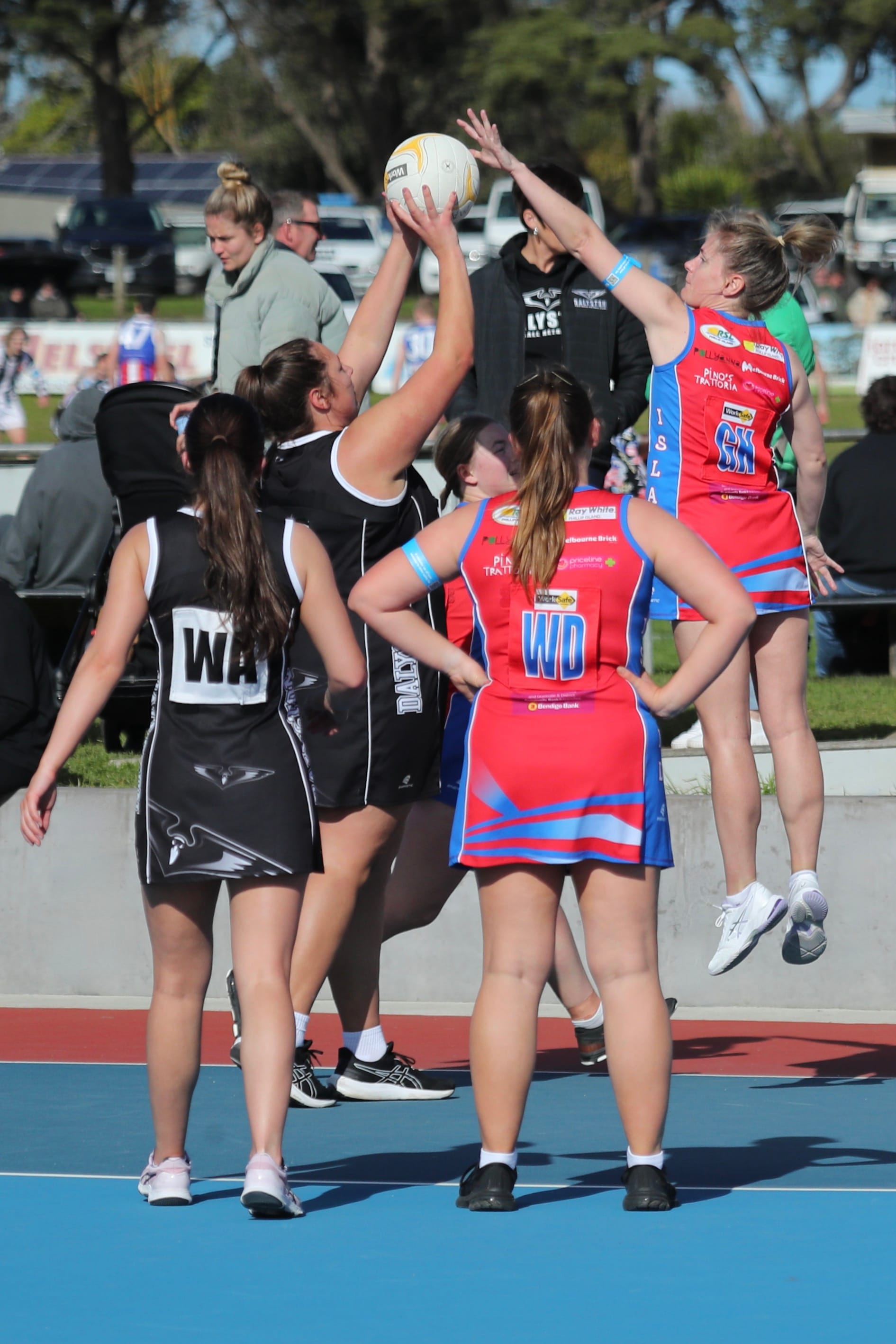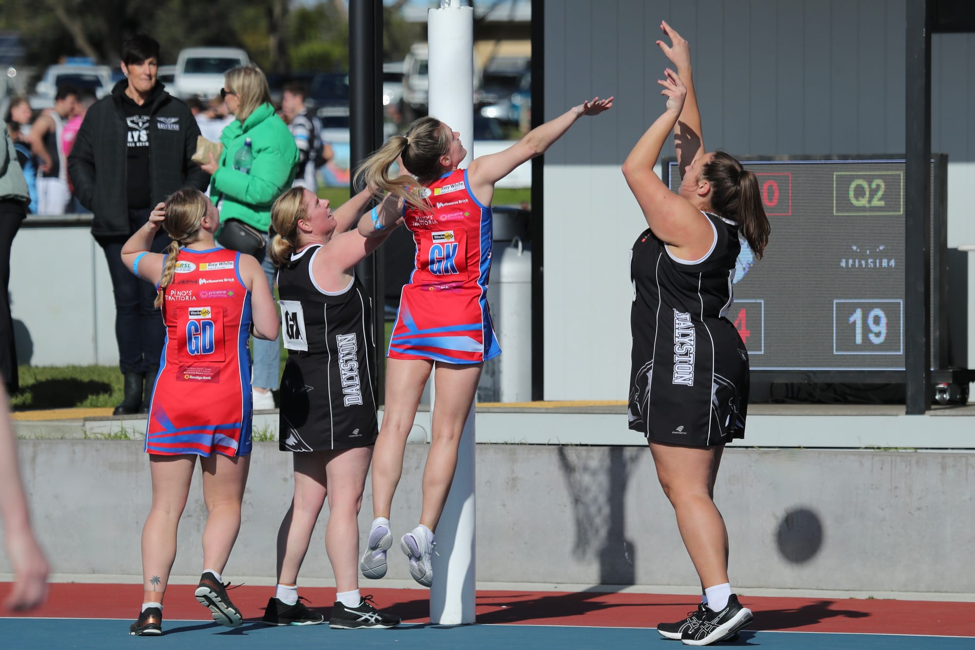 Chloe and Karina, the defending duo, were working hard to stop the impressive Daly shooters.