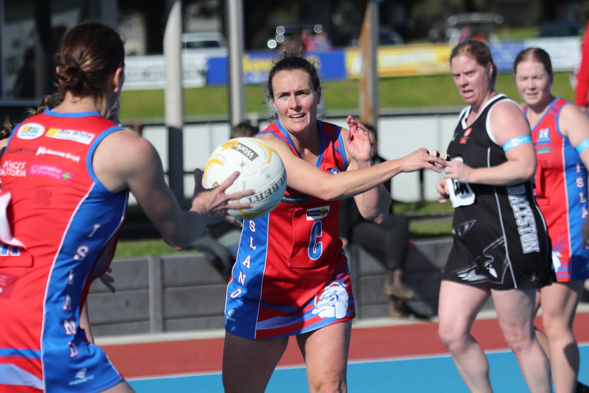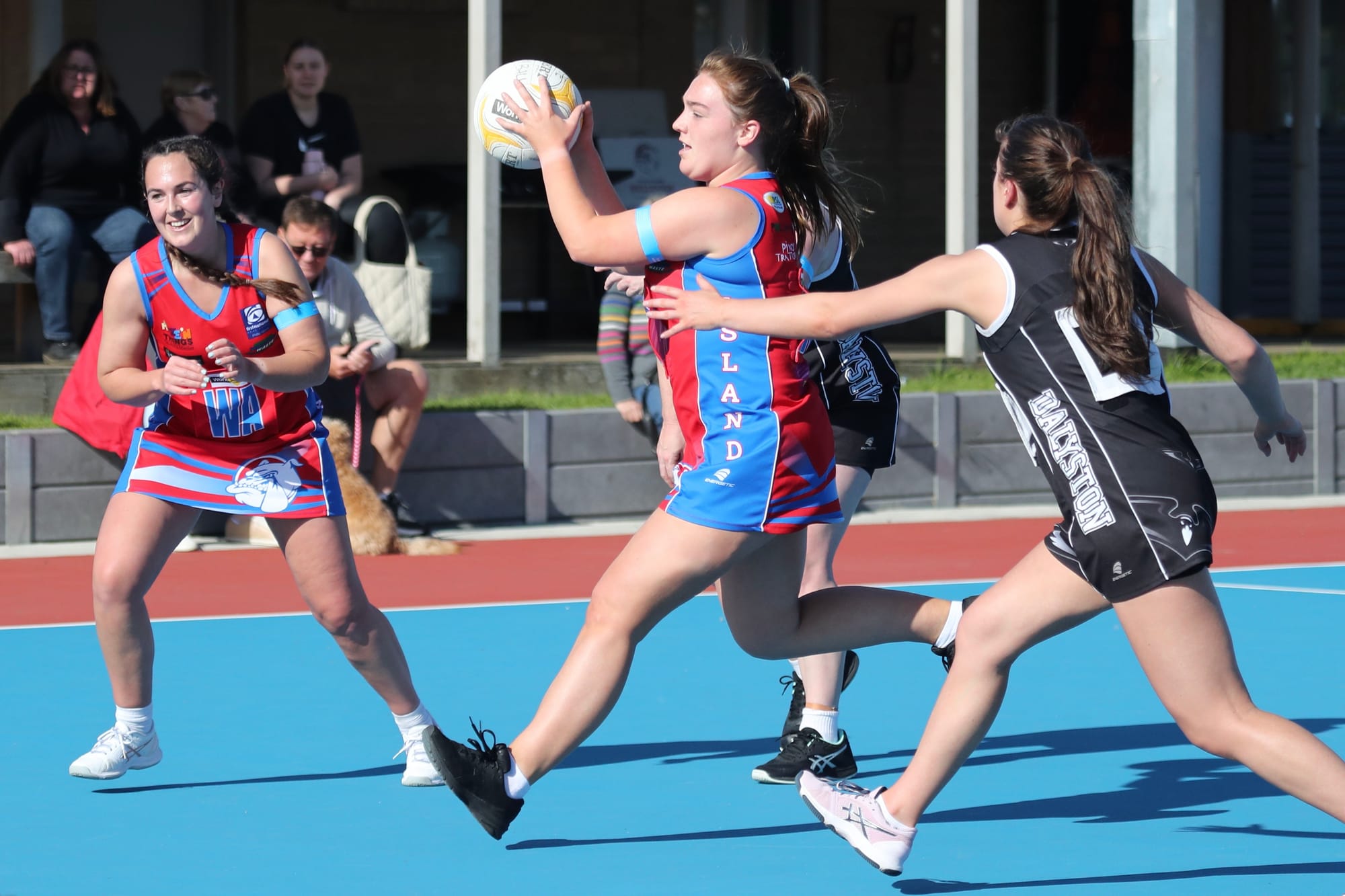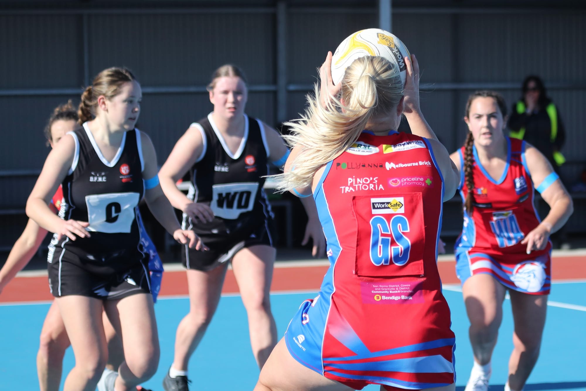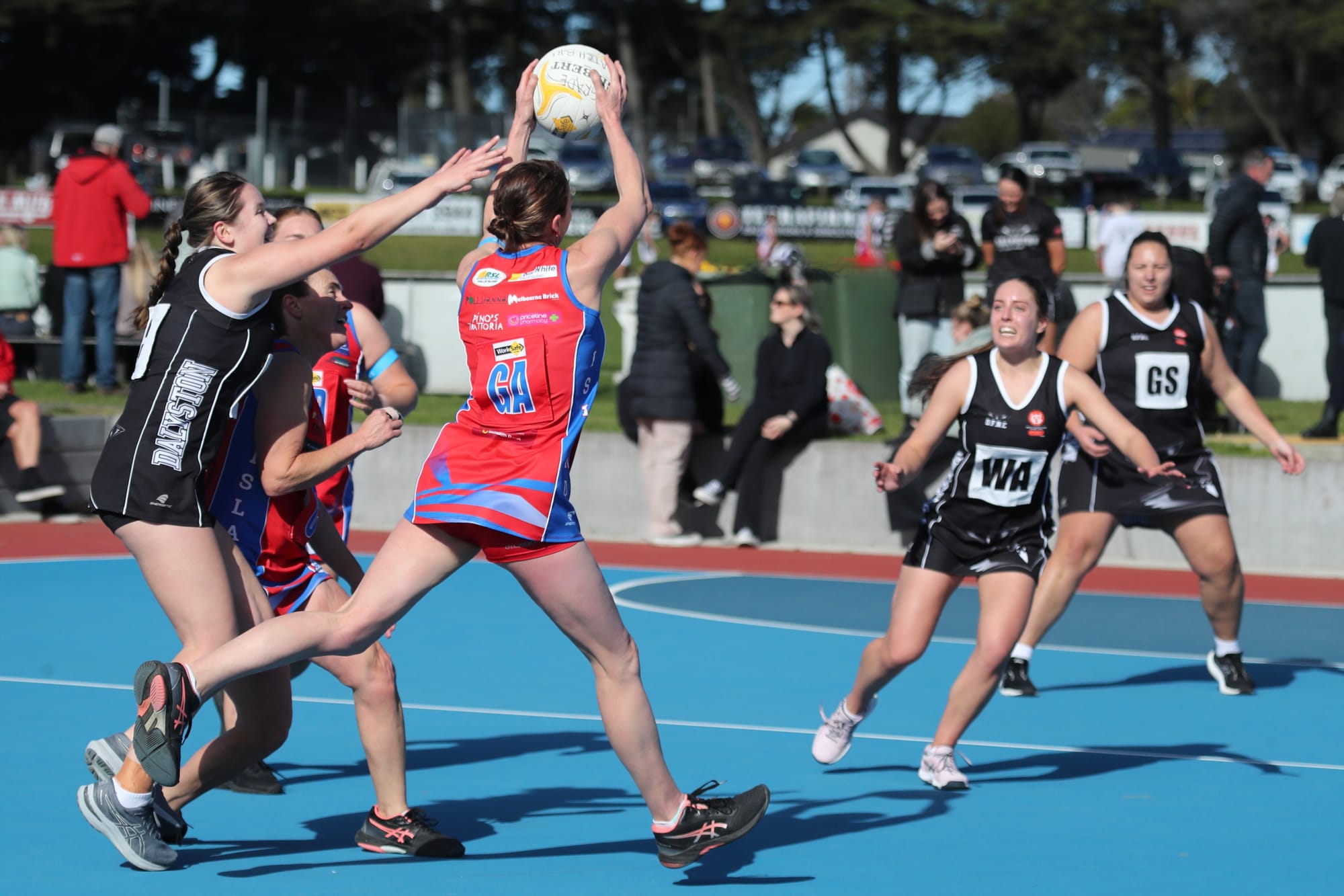 Chloe and Karina, the defending duo, were working hard to stop the impressive Daly shooters.