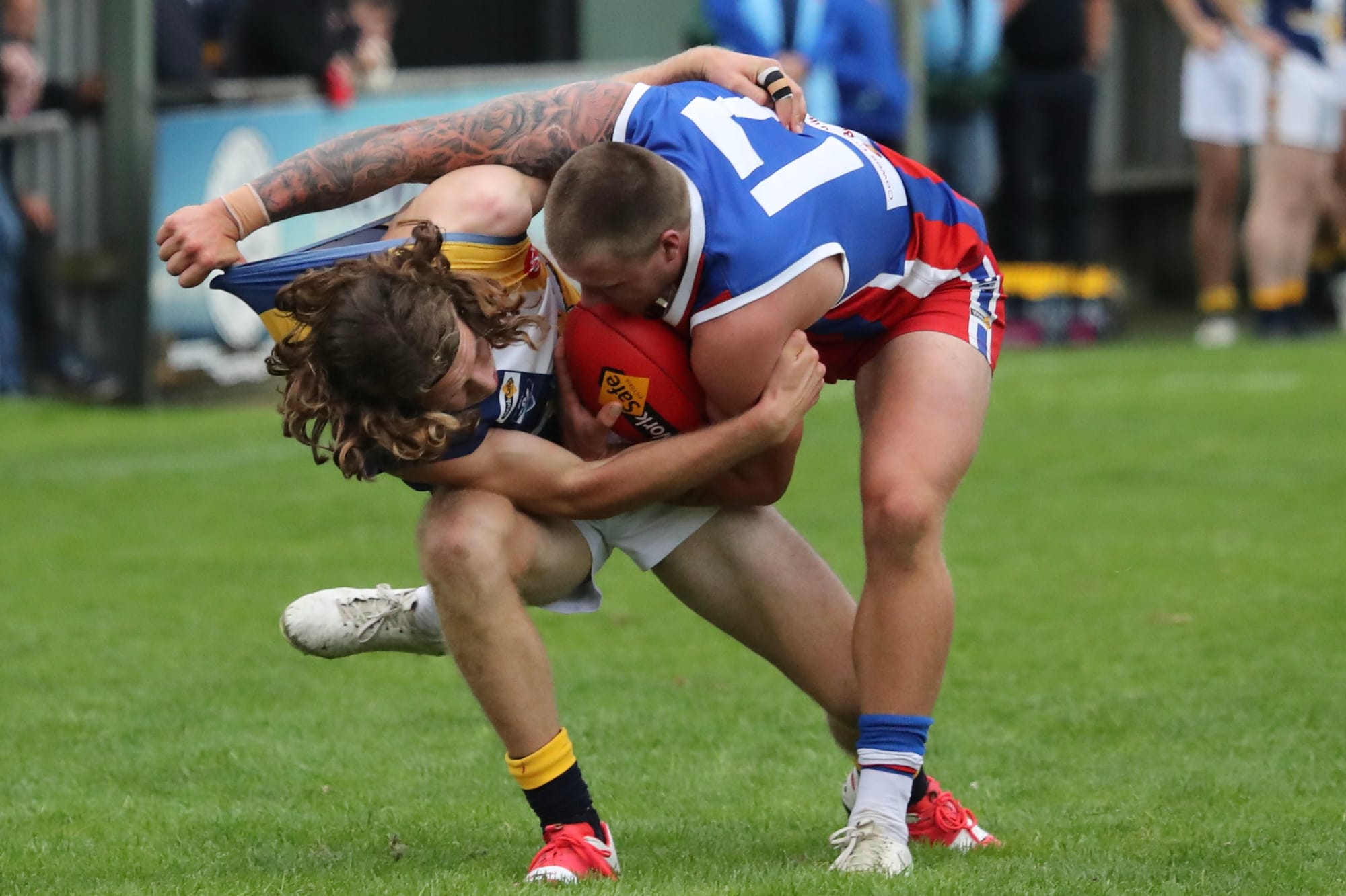 After that came nearly 10 minutes of arm wrestle between the respective half forward lines with plenty of arm wrestling and stare downs but no scoring.