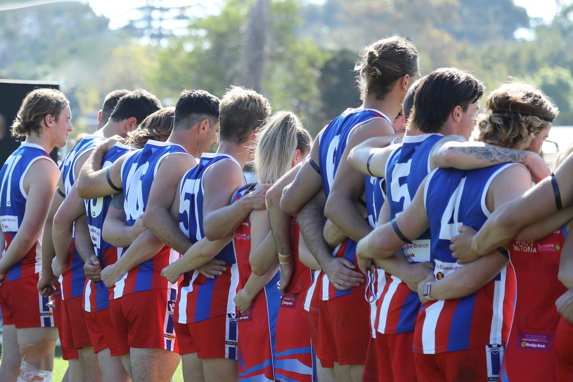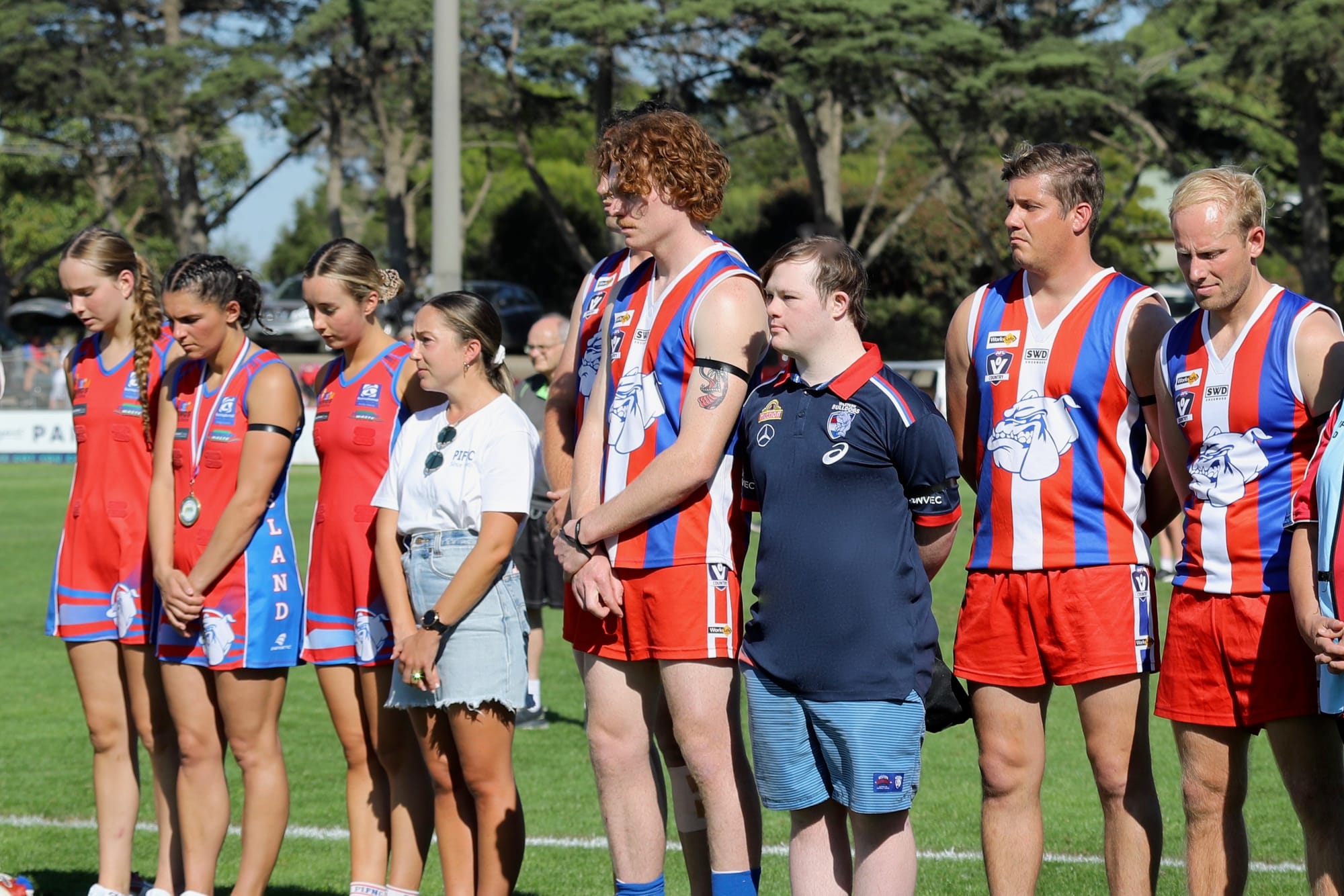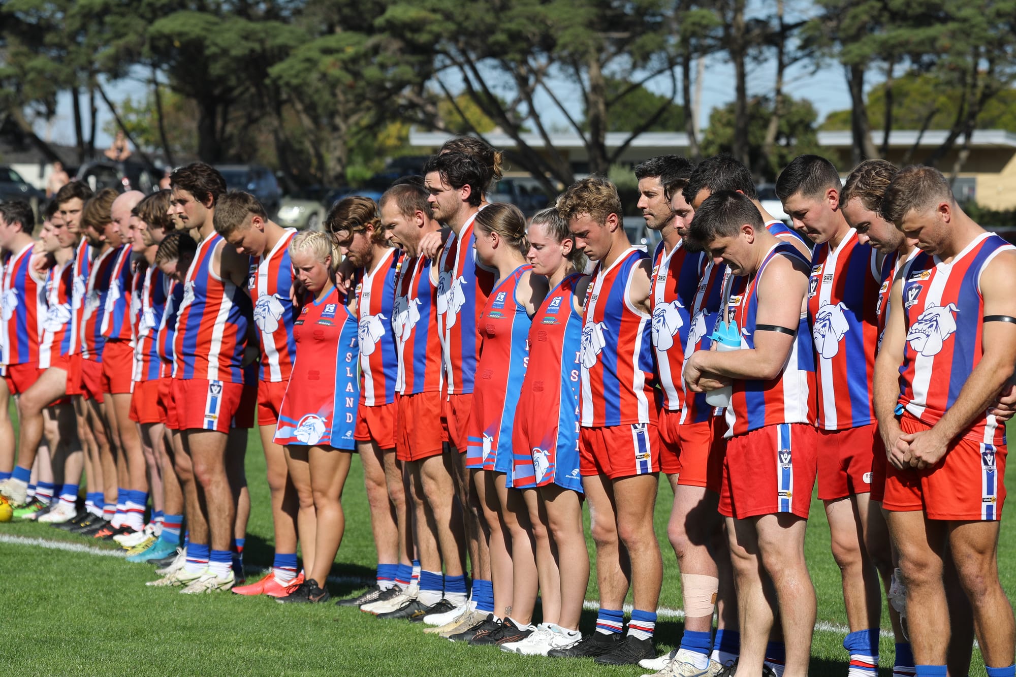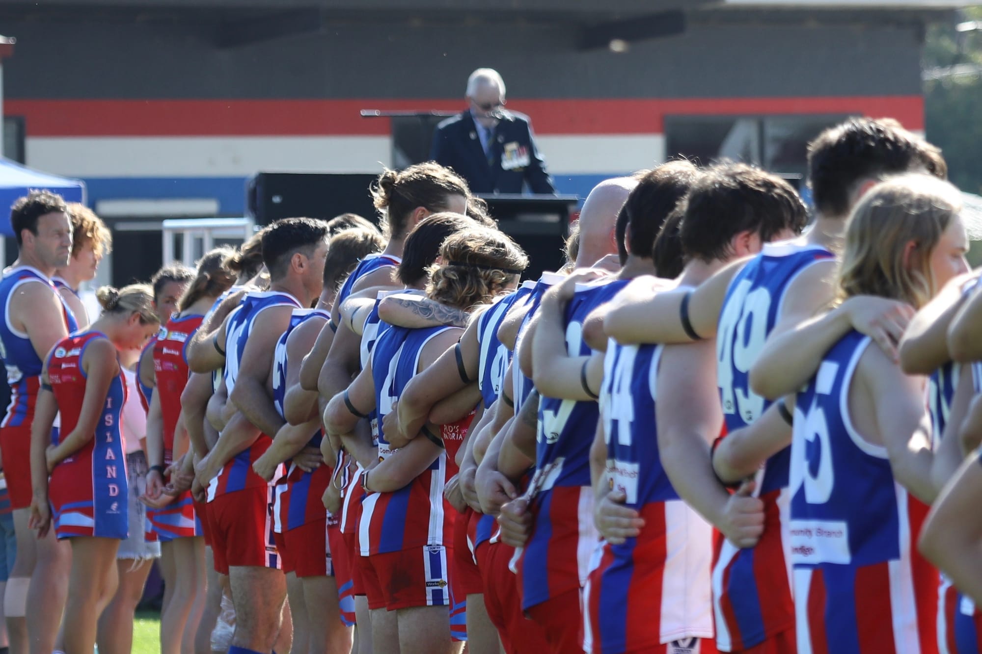 All seniors, reserves, coaches and officials showed their respect during the moving ceremony which culminated in the New Zealand and Australian national anthems.