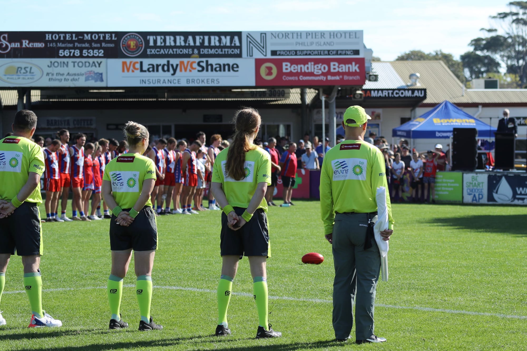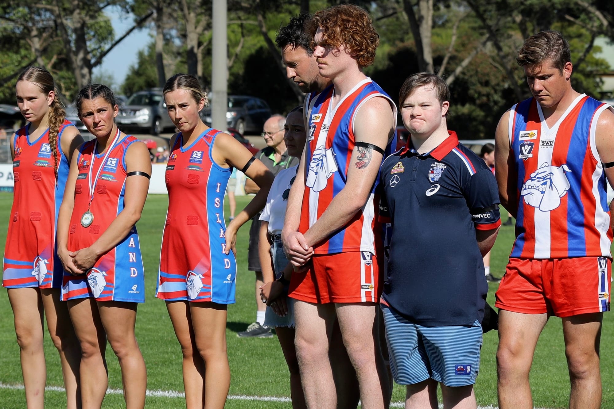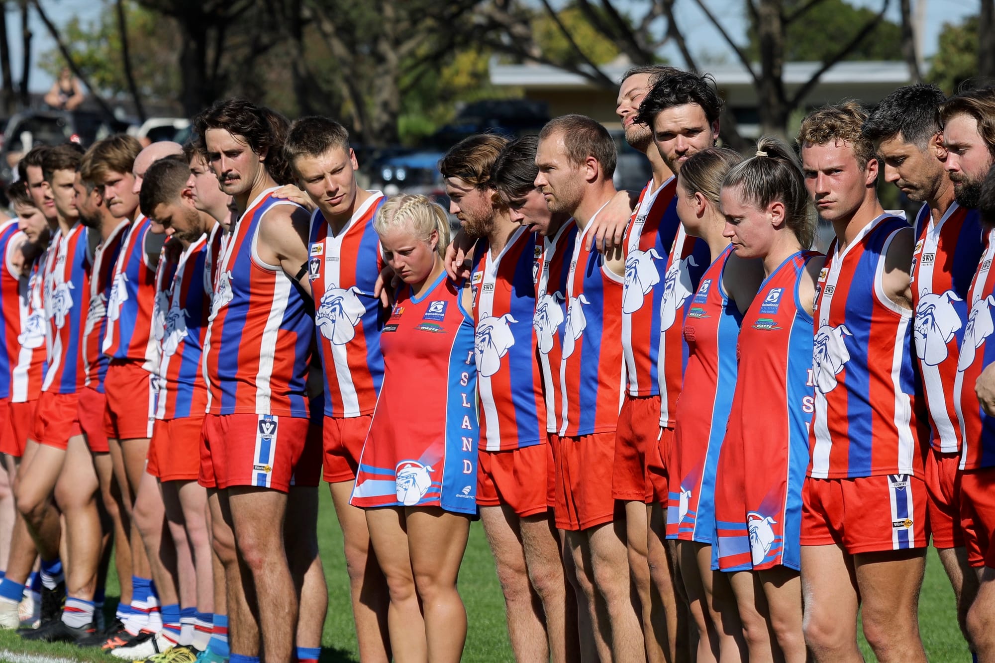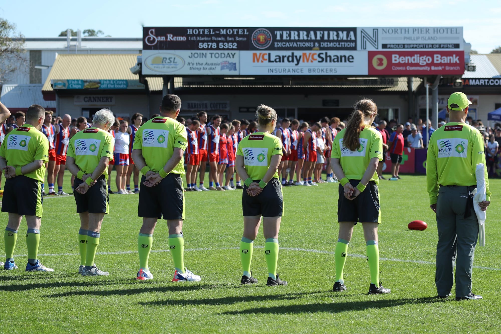 All seniors, reserves, coaches and officials showed their respect during the moving ceremony which culminated in the New Zealand and Australian national anthems.