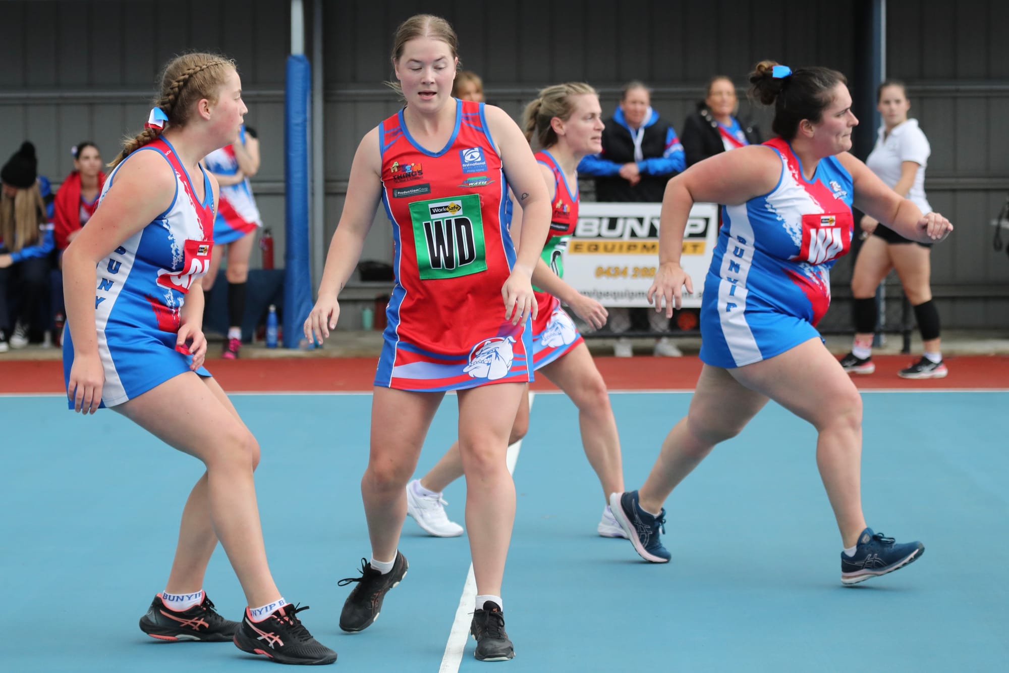 Chloe working hard in WD to help keep the pressure on against Bunyip’s attackers and bringing the ball down to Lawri and Bella.