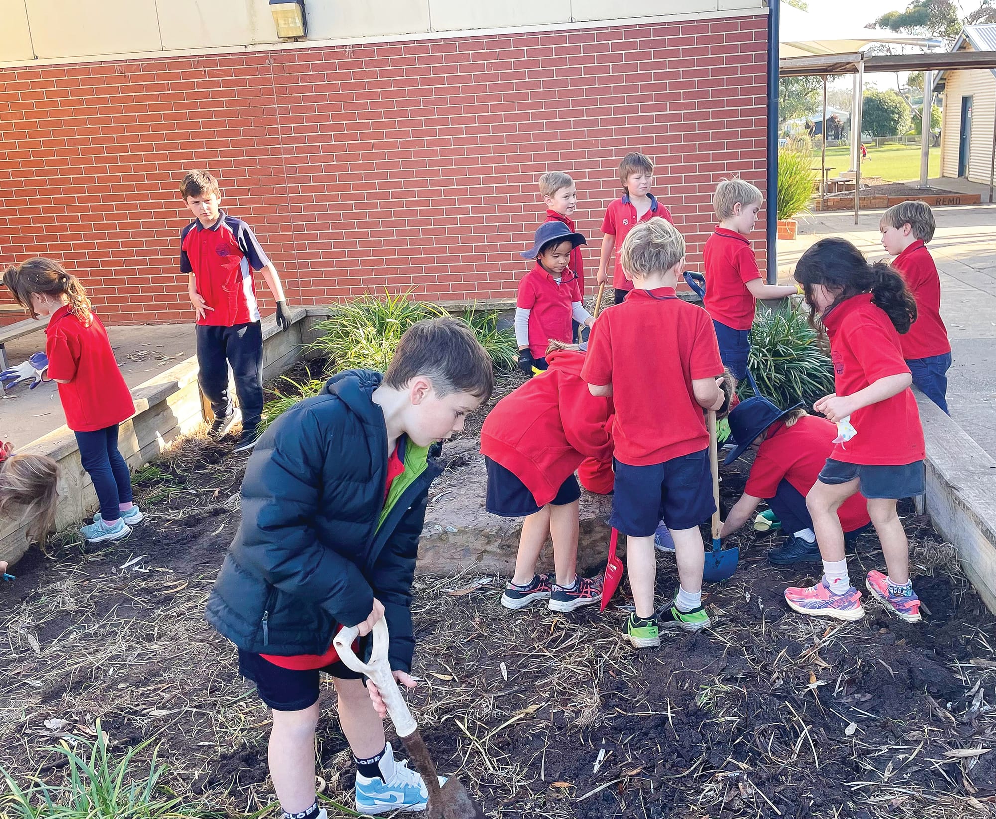 On Monday San Remo Primary School celebrated World Environment Day with parents and students cleaning up around the school and the Rec Centre as well as getting stuck into the gardens.