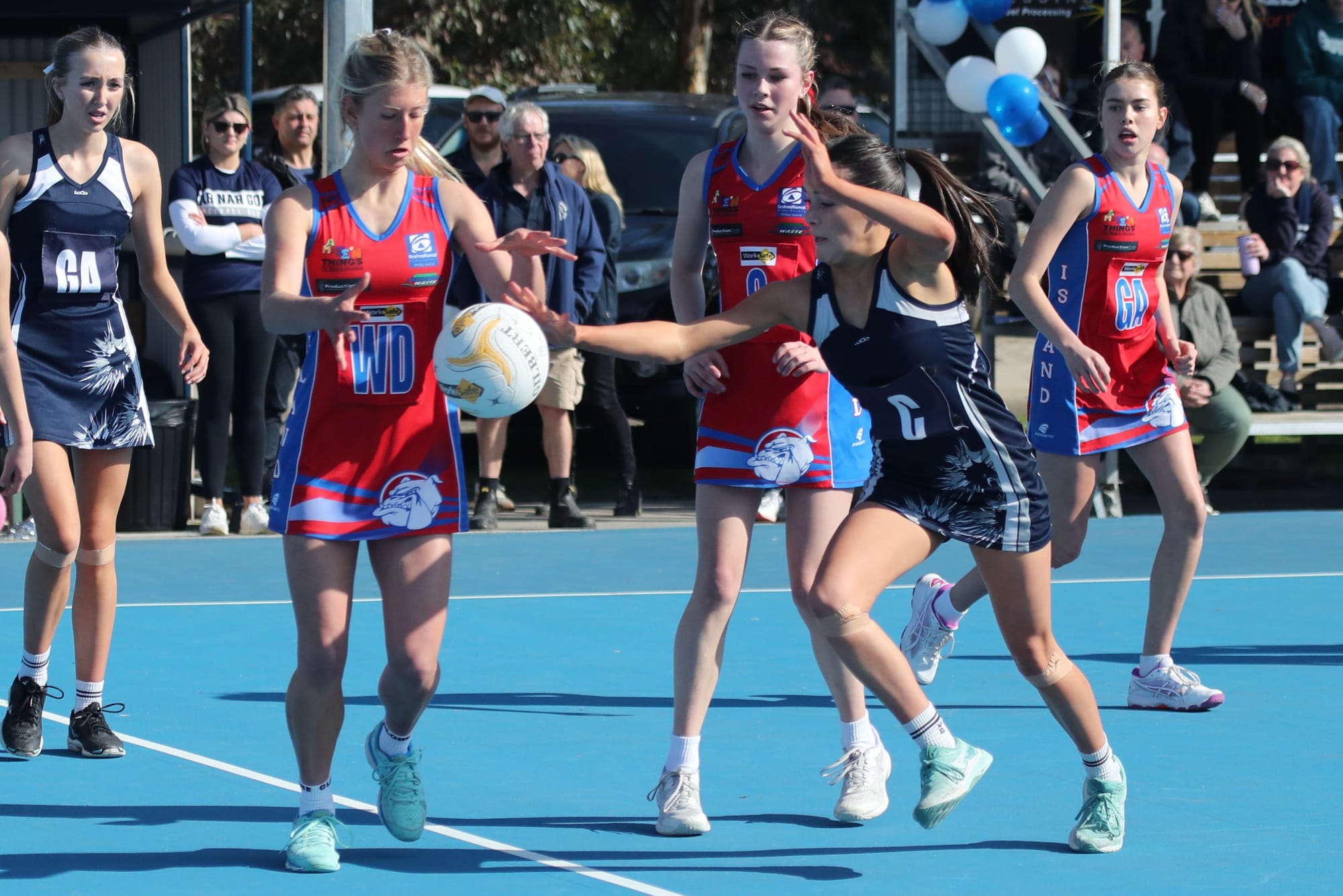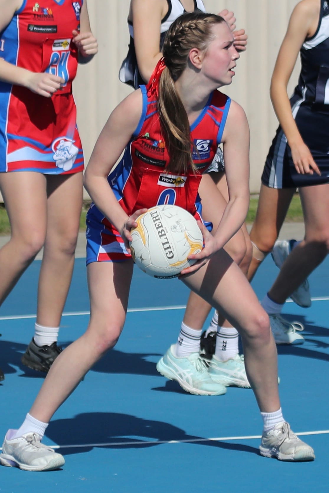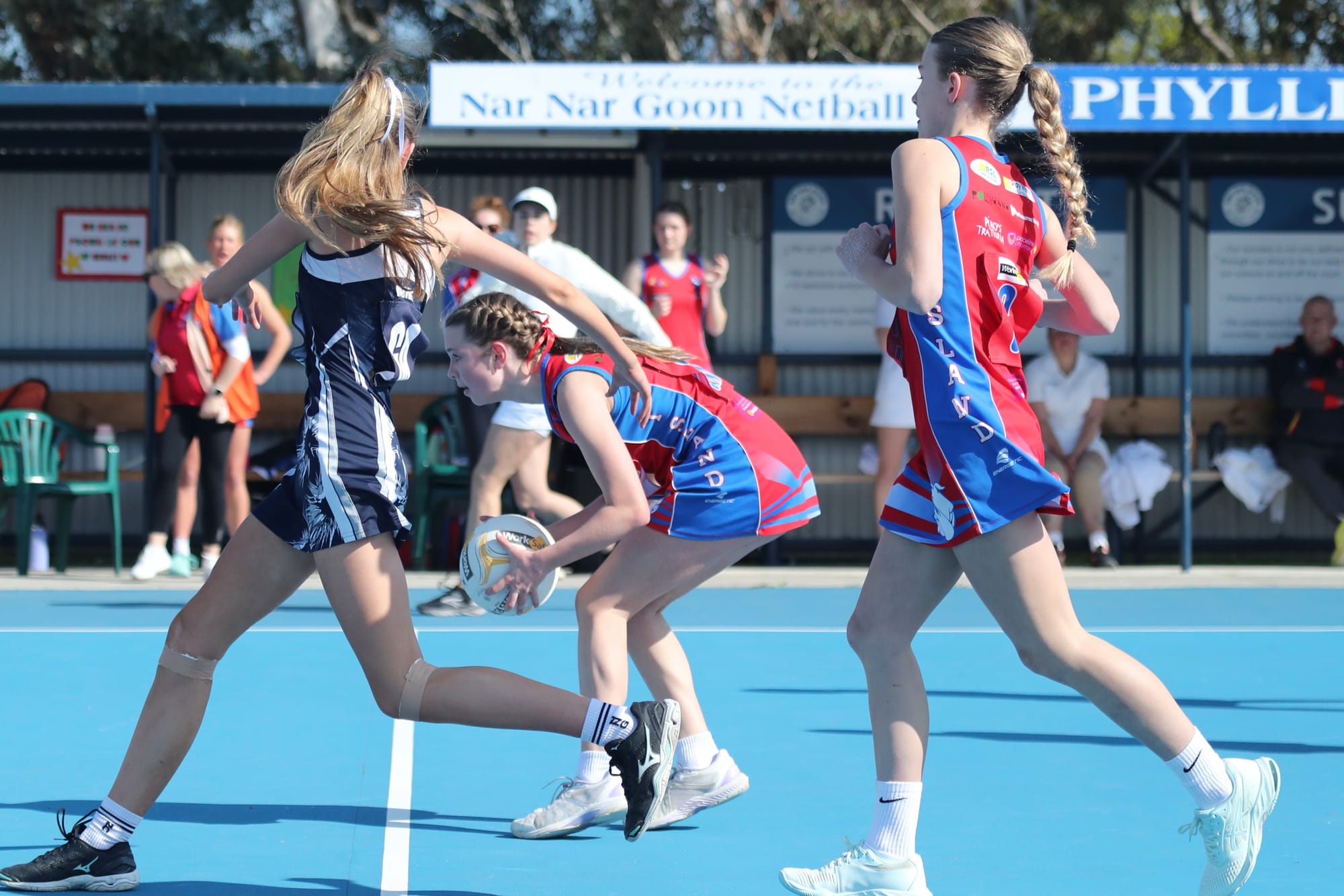 Mid-court led by Ellie, with Piper, Abby and Jasira stood up to the task against a very strong Nar Nar Goon centre court team.