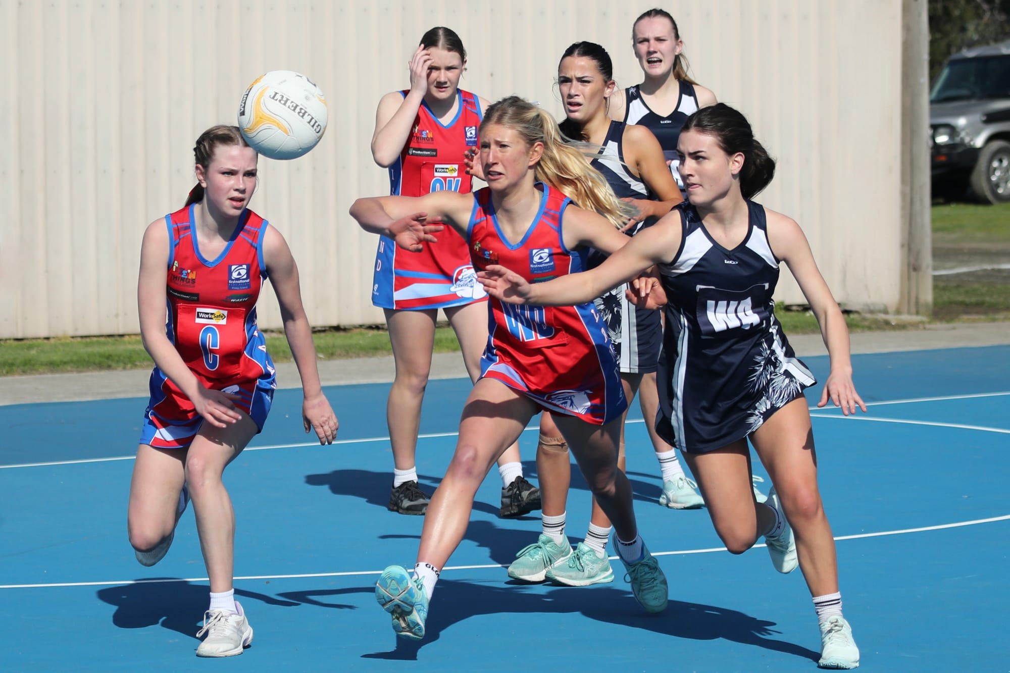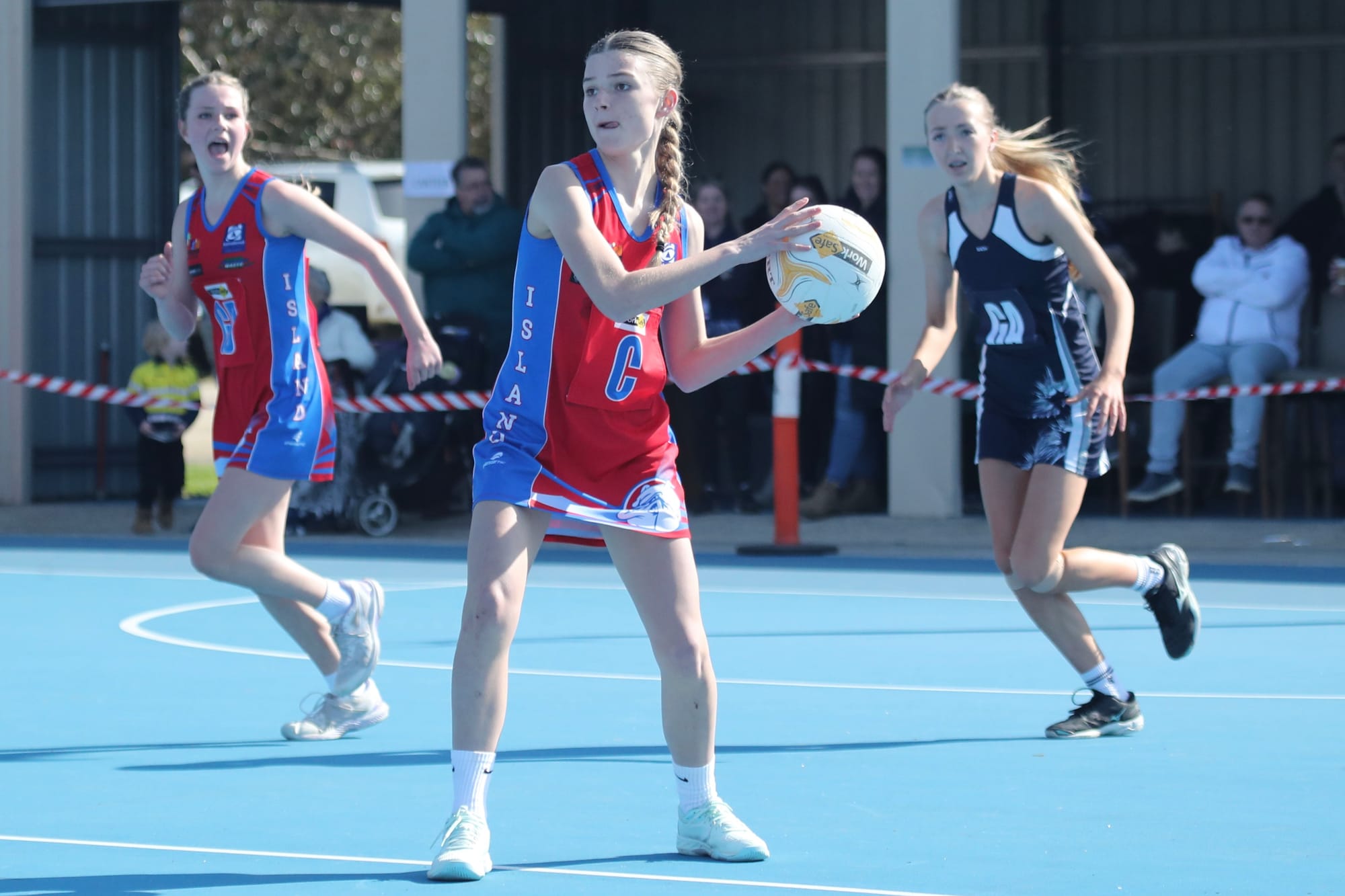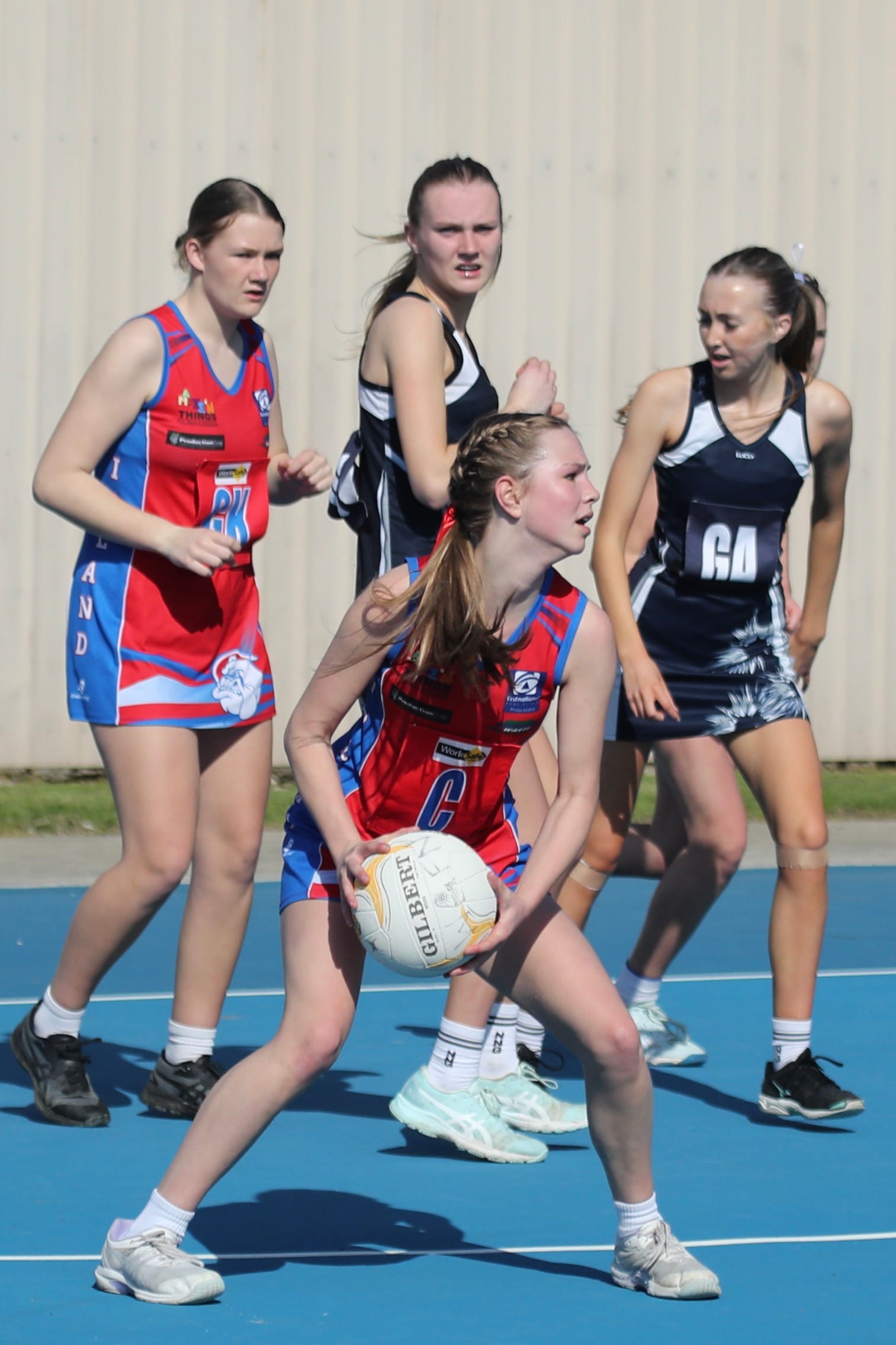 Mid-court led by Ellie, with Piper, Abby and Jasira stood up to the task against a very strong Nar Nar Goon centre court team.