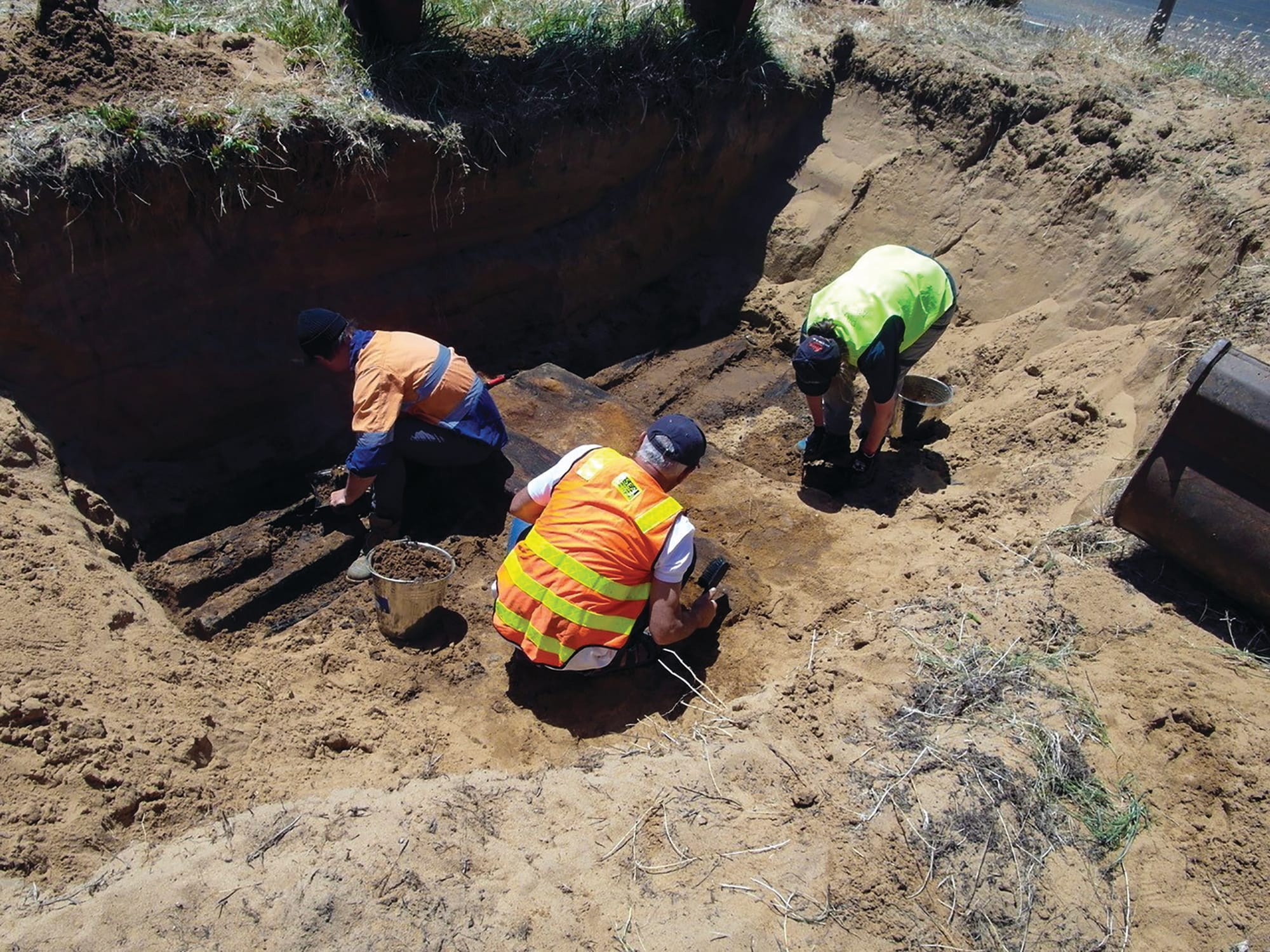 It wasn’t long before some timber was exposed, followed by several hours of careful digging using hand trowels and brushes.