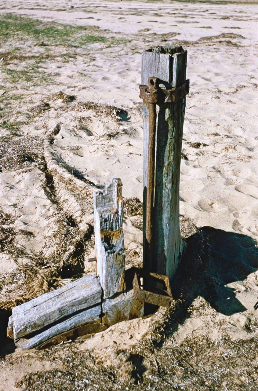 Gradually the sand built up over the hull, leaving only the stern post and rudder visible. They were removed around 1980. The council removed part of the keel when they built the sea wall west of the boat ramp.