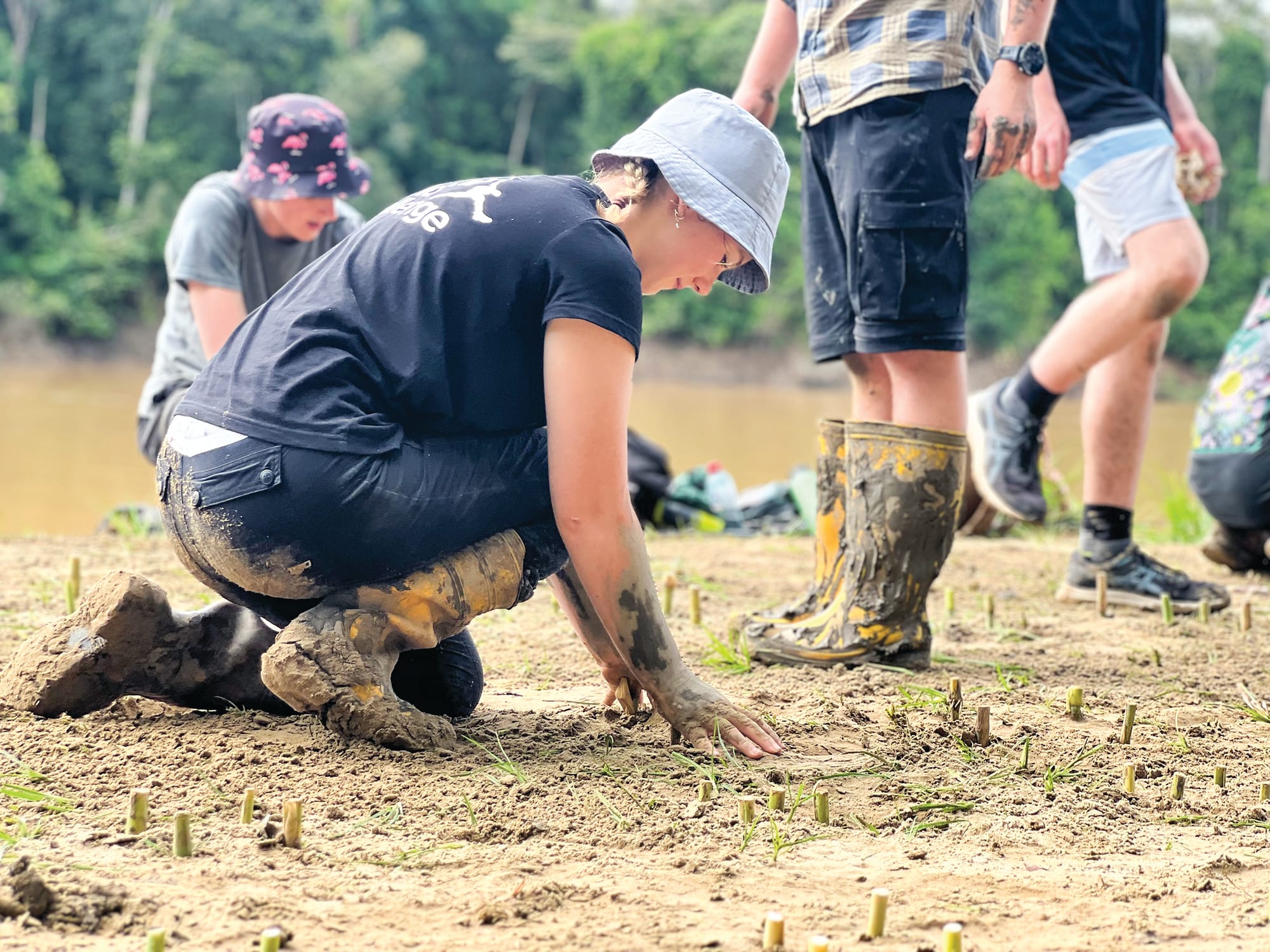 The project work was to help the local area of the Kinabatangan River to plant grasses and trees and clean up the river. The students worked extremely hard in the heat and humidity to make a real difference.