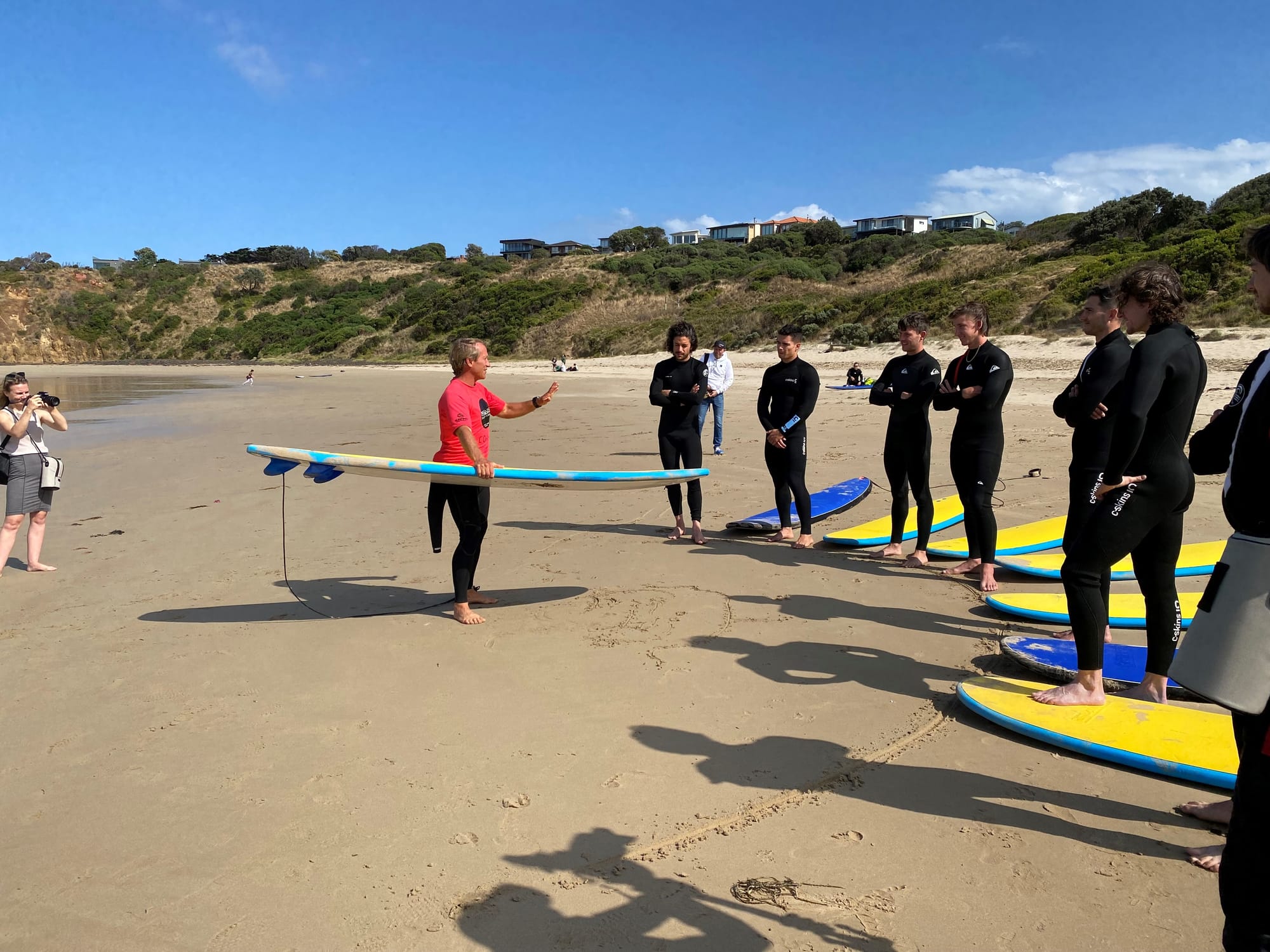 There were photographers and camera crews on hand to capture all the action as the riders headed out at Smiths Beach this morning for an exclusive surf lesson with Island Surfboard's Glyndyn Ringrose.