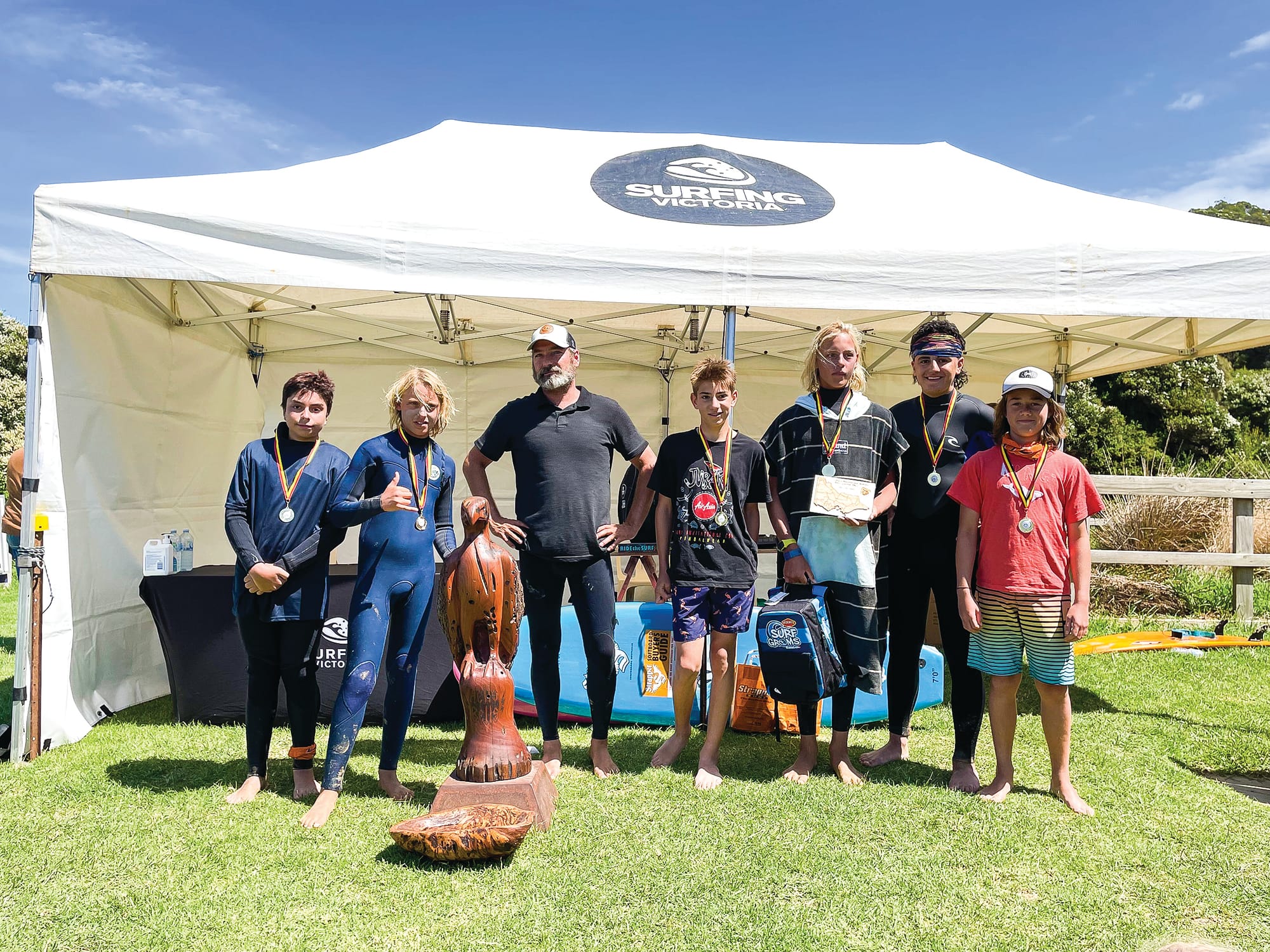 The Surfing Victoria Encouragement Award winners of a surfboard each, were Ruby Boagers (Armstrong Creek) and Aiden Tournier (Geelong).