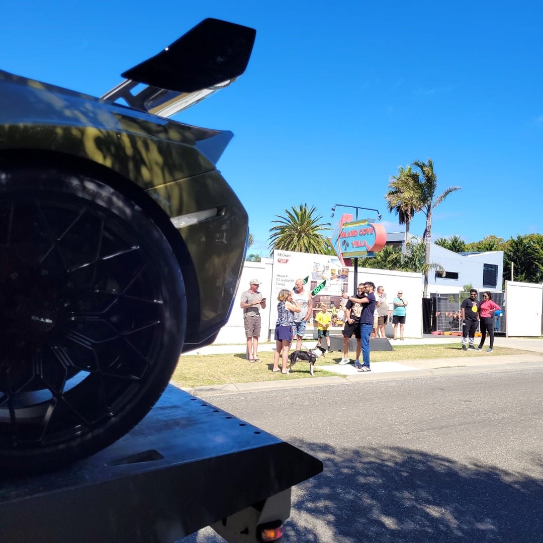 Six luxury cars were delivered to The Block on Justice Road on Friday afternoon.