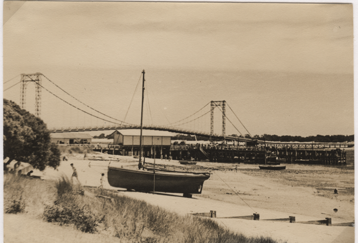 It was a long and difficult struggle, but in spite of difficulties and disappointments, those concerned did not at any time lose faith, that a bridge would ultimately be built.Support for a bridge was not unanimous, however.The company that controlled the only means of transport on and off the island, operating both the ferry from Cowes to Stony Point and the Punt from Newhaven to San Remo, did not see the necessity for a bridge; and tried to persuade the people of Phillip Island not to support the idea.The council of the day opposed it.Letters to the Powlett Exprss showed it was one of the most divisive issues of that era.Those against argued that day trippers would start coming to Phillip Island; that they would not spend the money that longer staying visitors would; and that the island would get “riff raff” coming.History records that Richard Grayden, and Mr Rupe Harris, a Phillip Island councillor for 20 years, did and gave much to ensure that eventually, a bridge from San Remo to Newhaven would be built.A tribute by island historian Josua Gliddon on the death of Mr Harris in 1971, rcords that: “In association with the late Dick Grayden and John Edhouse, Mr Harris’ ability to organise and direct, plus his tenacity and purpose, resulted in the construction of the first Phillip Island bridge.” Life before a bridge was built to Phillip Island Phillip Island’s pioneers and early settlers brought stock and supplies from, and transported their crops to Melbourne, in the years following settlement, by sailing ship.There was no other option available to them.The journey from Western Port to Port Phillip Bay and back was often a hazardous one. Passengers could sail or row to the Mornington Peninsula and then be carried by coach to Melbourne.A punt was used on Western Port and used for carrying livestock around the bay from 1878.It’s loading facility at Cowes was known as the Tide Gauge, a ramp at Erewhon Point.It was towed by the ferry. By 1928, it was rotting in the sand at San Remo according to the Argus newspaper.After the Koo Wee Rup swamp was drained in the early 1900’s, coaches and later motor vehicles were able to reach Griffith's Point (now San Remo) by road.From San Remo, people were rowed across the narrows to Newhaven by Richard Grayden.Stock were not so lucky. They had to swim between San Remo and Newhaven from 1908 until the 1920's.A two car punt in operationIn 1929, Phillip Island was able to be reached by a two car punt, plying between San Remo and Newhaven.By 1938 this had been replaced by a six car punt.Large vehicle ferries taking 36 cars and 400 passengers also ran between Cowes and Stony Point.The Cowes ferry made one trip per day, except at peak holiday time, when it ran frequently.The punt ran as required during daylight hours.It cost travellers 10 shillings per car and 2 shillings 6 pence per person, to use it.The approaches to the punt were so bad that vehicles had to be driven at times through fast flowing salt water.The economic justification for a bridge was obvious to Phillip Islanders.As Josua Gliddon in his book “Phillip Island in Picture and Story” remarked, everything worth having has to be fought for, and this was certainly true about the first bridge.The ferries and the launch towed punts, although giving good service, were beginning to fall short of the needs of modern transport.The push for a bridge was headed by one of Phillip Island’s pioneers Richard Grayden, who had talked constantly of it since the early 1920's.Having been a boatman at Newhaven for many years, he knew the Passage well, he believed the idea was sound, and he never lost faith in it.Pressure from locals was brought to bear through the formation of "The Bridge League in the late 1930’s.In 1936 a branch of the Victorian Country Party was also formed on Phillip Island, for the express purpose of garnering government support for a bridge.Richard Grayden was president, and Mr Rupert Harris secretary.At the first meeting Mr Harris, who subsequently gave unstintingly of his time and money and travelled many times to Melbourne, moved that all in the Party's power be done to persuade the Government to build a bridge.He took many trips to Melbourne as Chairman of the Chicory Marketing Board, and took the opportunity to haunt the corridors of power in Parliament House, lobbying for a Phillip Island Bridge.The issue was a divisive on at the time with the council and many individuals opposing it.However, an overwhelming “yes” vote of locals at a meeting held in 1938 in Cowes, attended by the Victorian Premier Mr Albert Dunstan, finally decided the matter.In April 1939 the first pile was driven.Twenty months later, on Friday, November 29, 1940, te great day came. The bridge was opened by Victorian Premier Albert Dunstan; his wife cut the ribbon, and leading the celebration march across were the children from Ventnor Primary School.Una Lyons (nee Coels) who celebrated her ninetieth birthday recently, remembers the day well.She was in the first row of school children to march across when the ribbon was cut.She recalls that 1940 and te opening of the suspension bridge brought about a change that was to heavily impact the lives of everyone on Phillip Island.To celebrate the occasion, a ball was held that evening in the Cowes Shire hall.The suspension bridgeBuilding the first bridge was no easy feat.Funds were limited and the engineering problems of bridging the channel between Phillip Island and the mainland were tremendous due to the depth of water, strong tidal conditions and need for a clearance for fishing vessels to pass under.It was therefore decided to construct a suspension bridge, to cater for loads up to six tons, which could be built for an outlay of about 50,000 pounds ($100,000).Work started on a bridge 1,765 feet long and 18 feet wide between kerbs with no footway, but with six pedestrian refuges along its length.The 550 feet long suspension span crossed the sectio