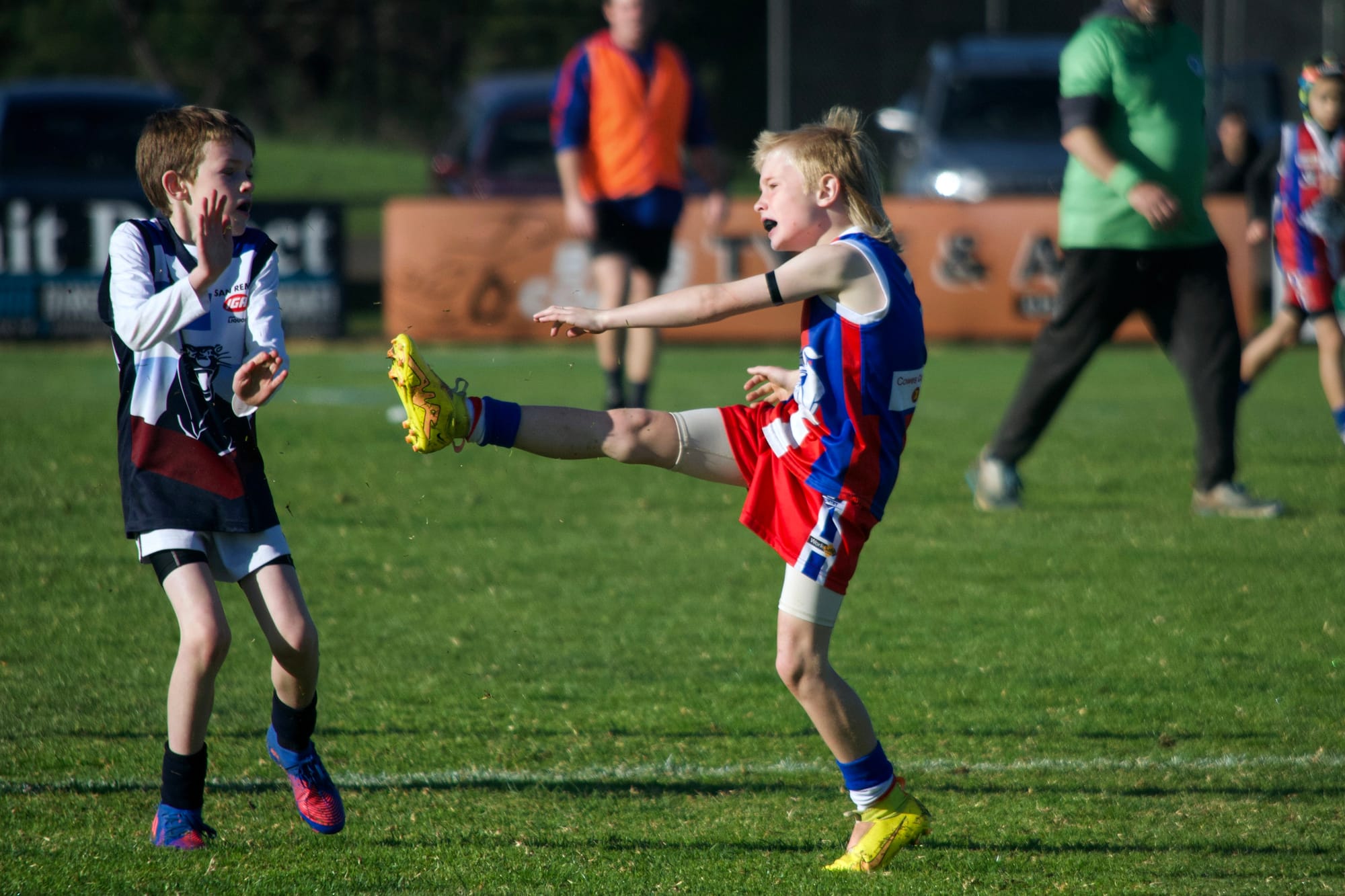 Captain, Archer revved up the kids with inspirational words; ‘pick up the ball and boot it’ and coach Bianca’s words ‘Back yourselves’ made an impact at the first bounce.